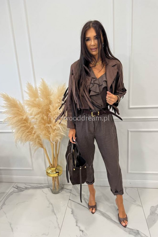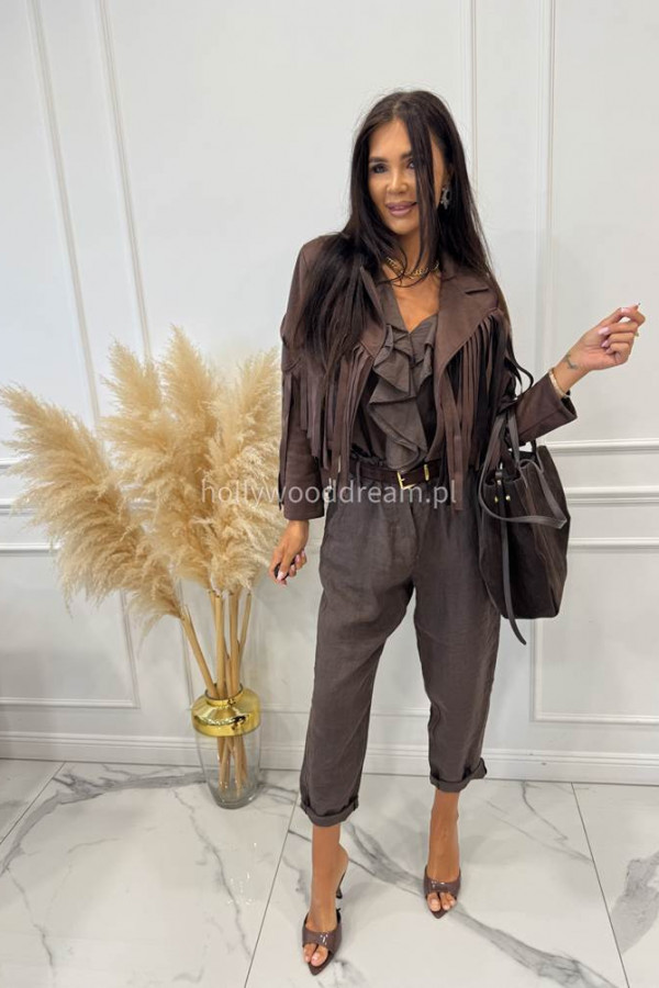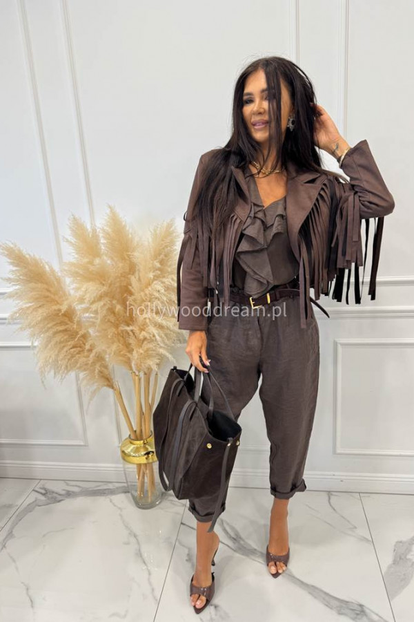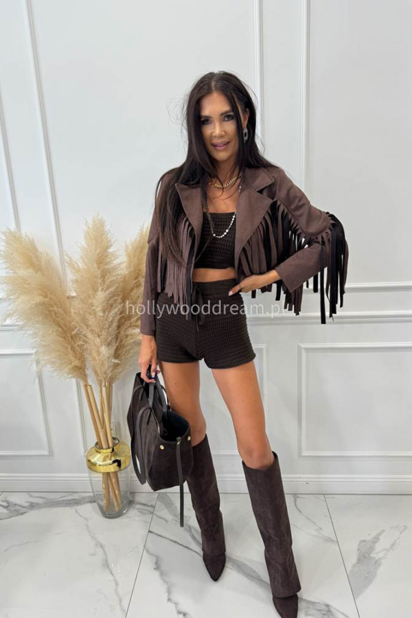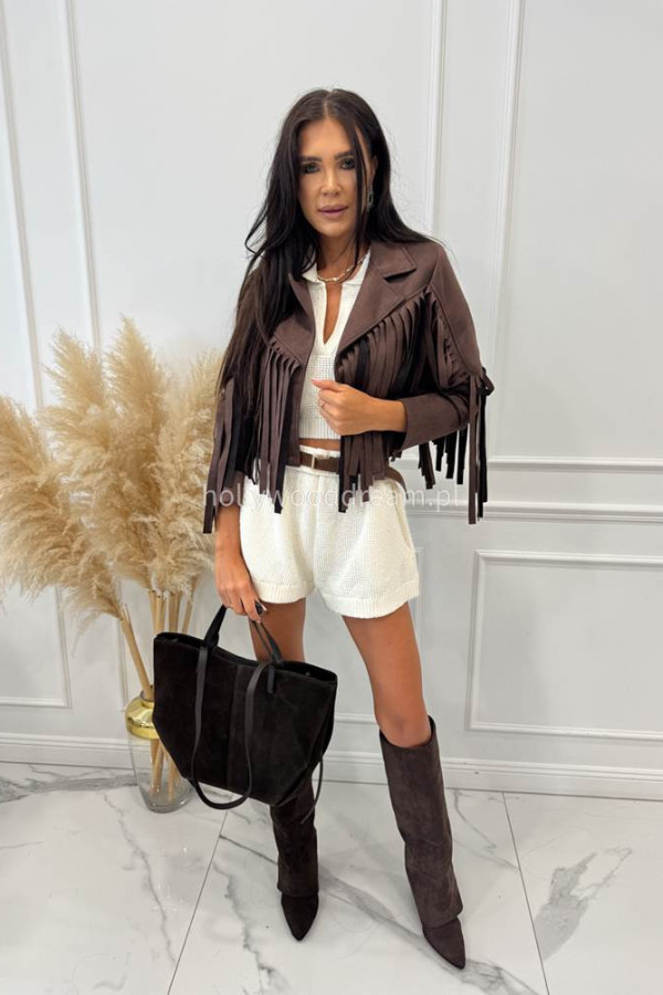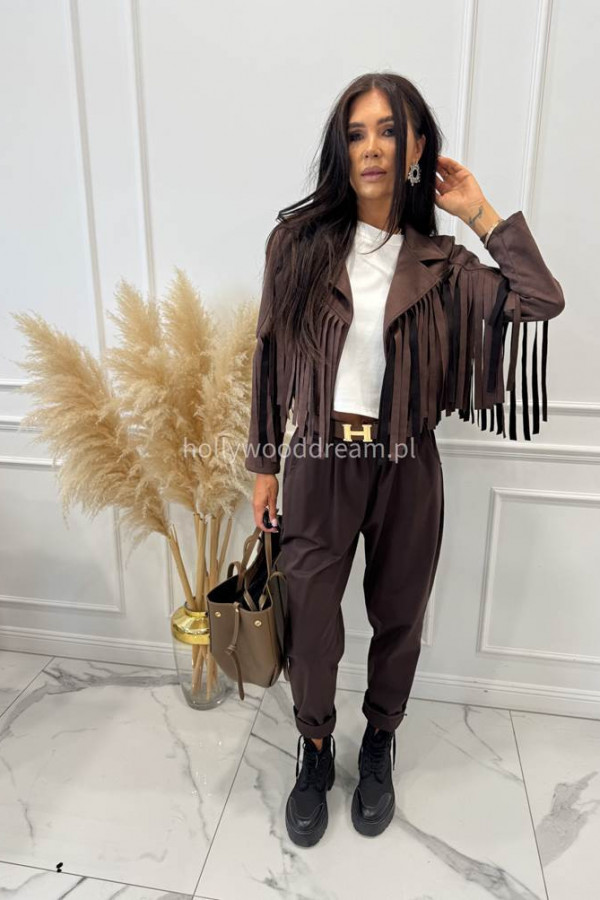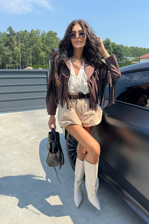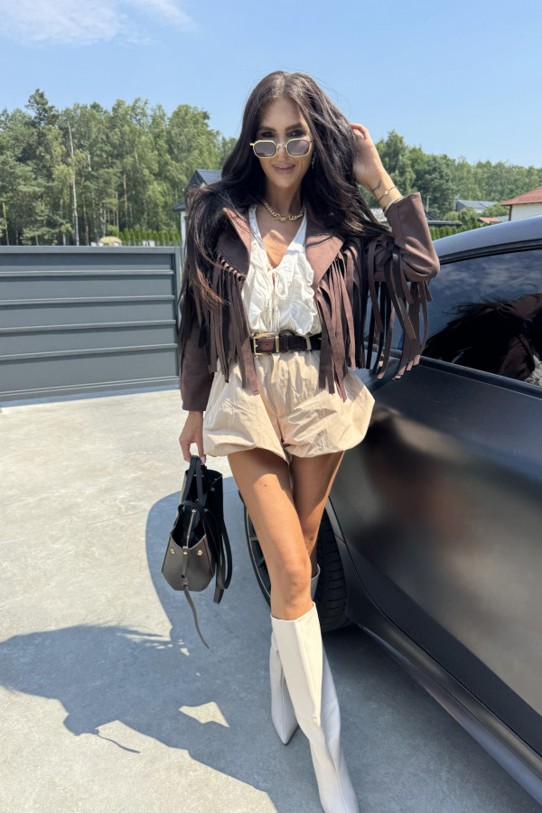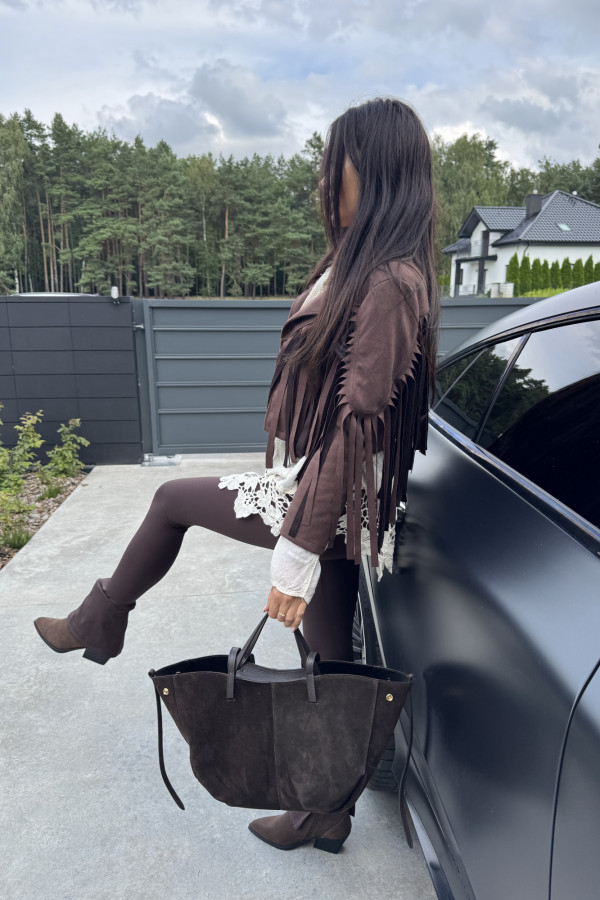 Kurtka zamszowa z frędzlami FRANJA brązowa 02,19