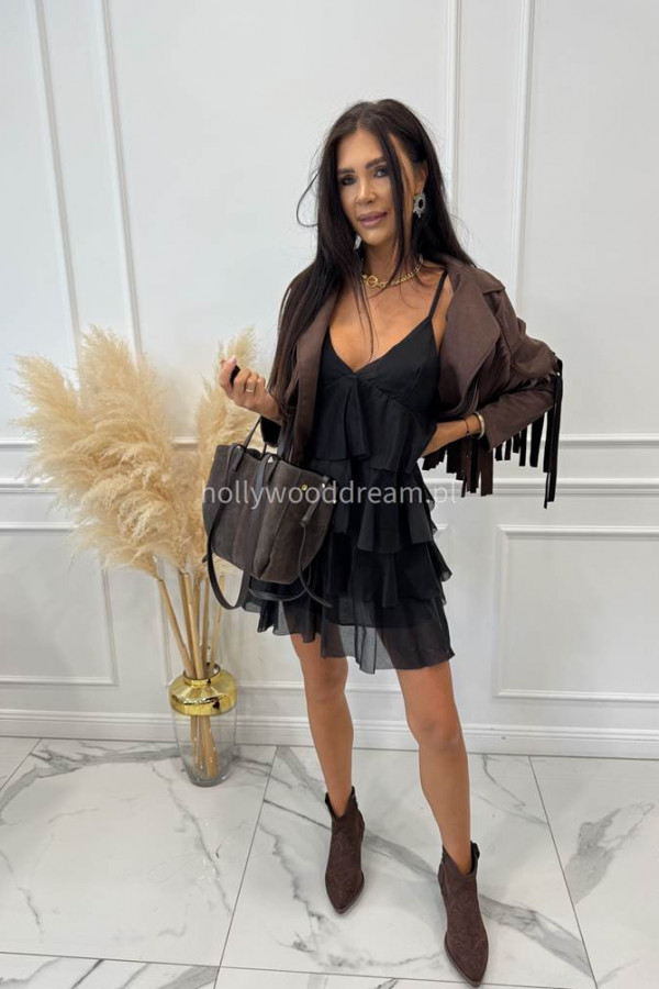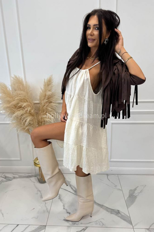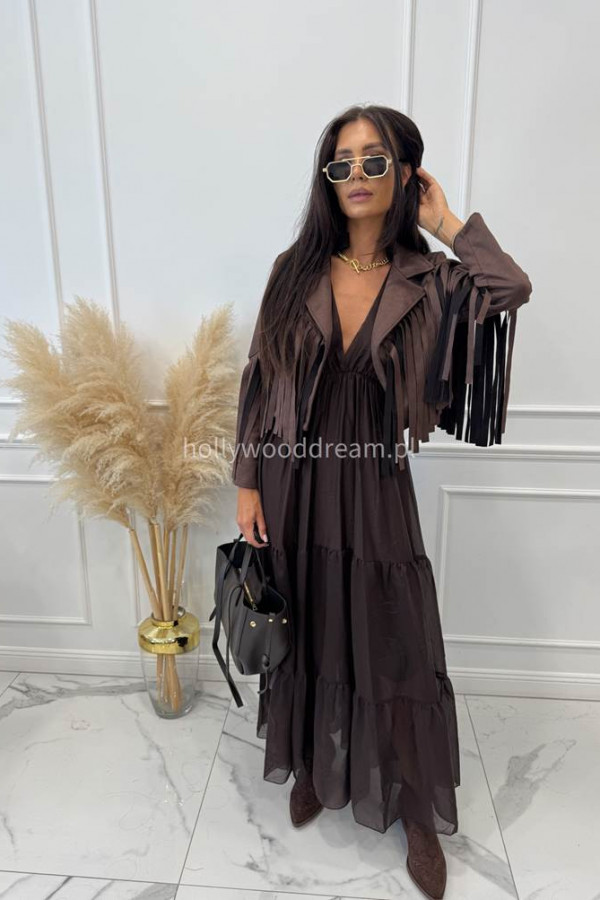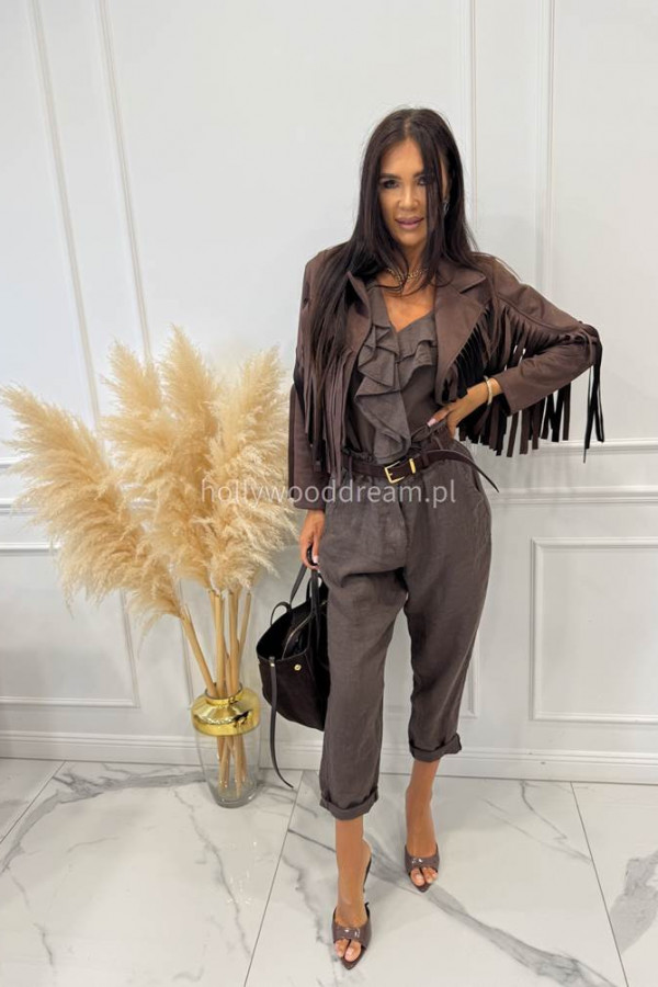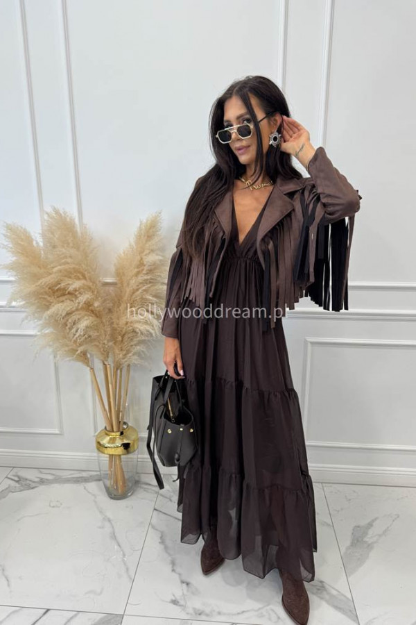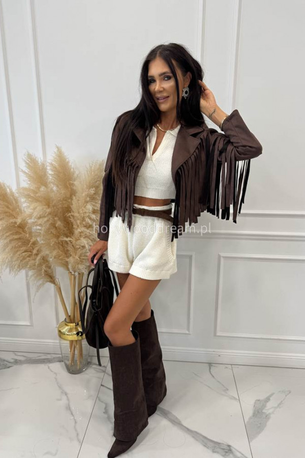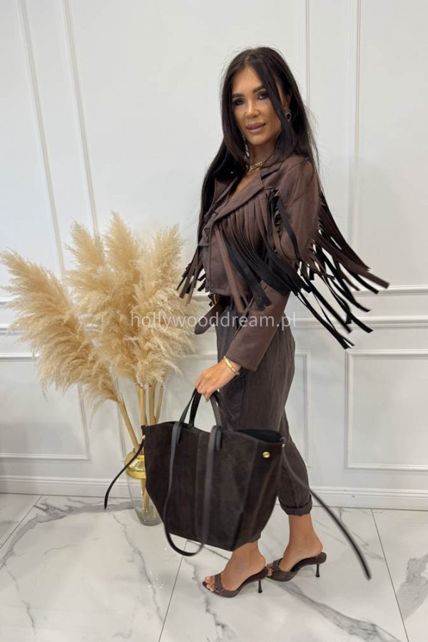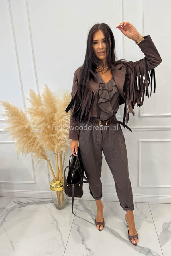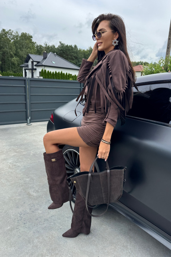 Kurtka zamszowa z frędzlami FRANJA brązowa 02,19