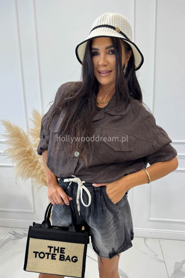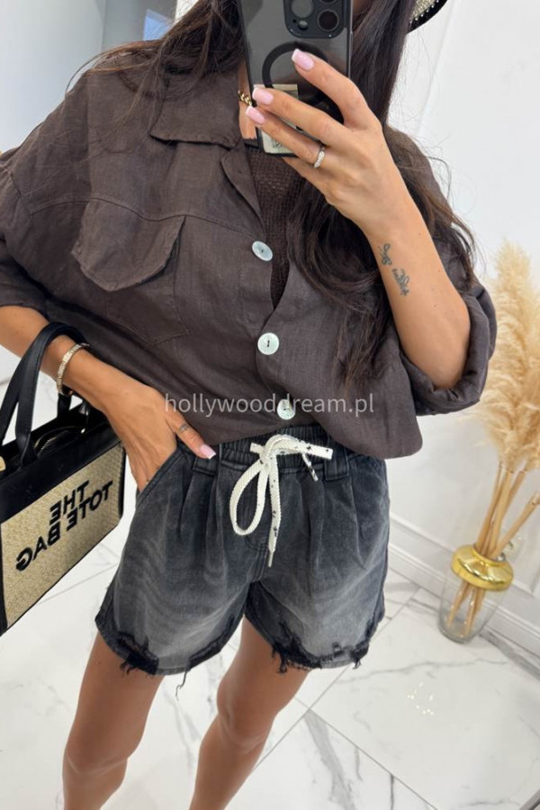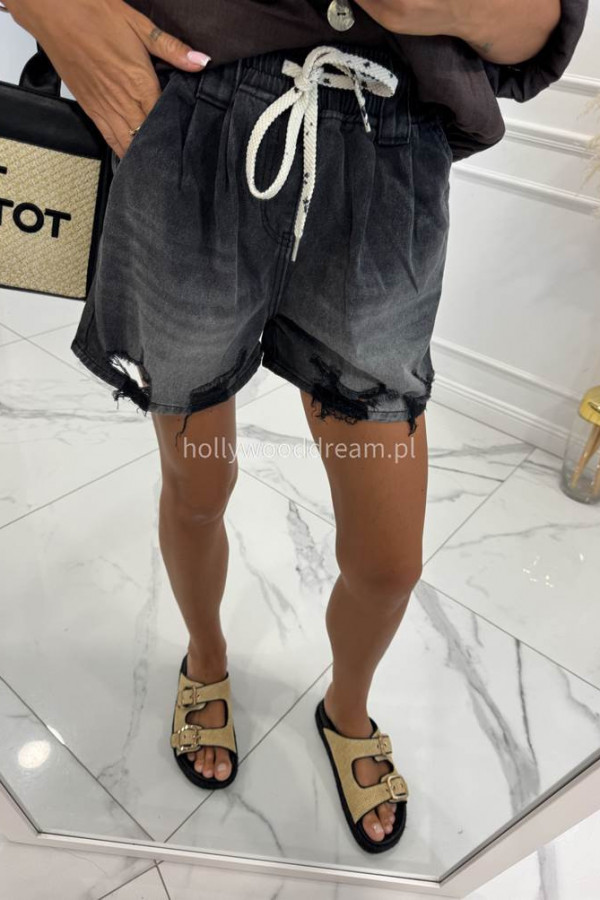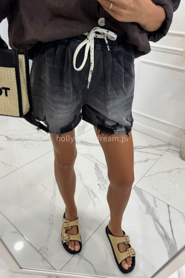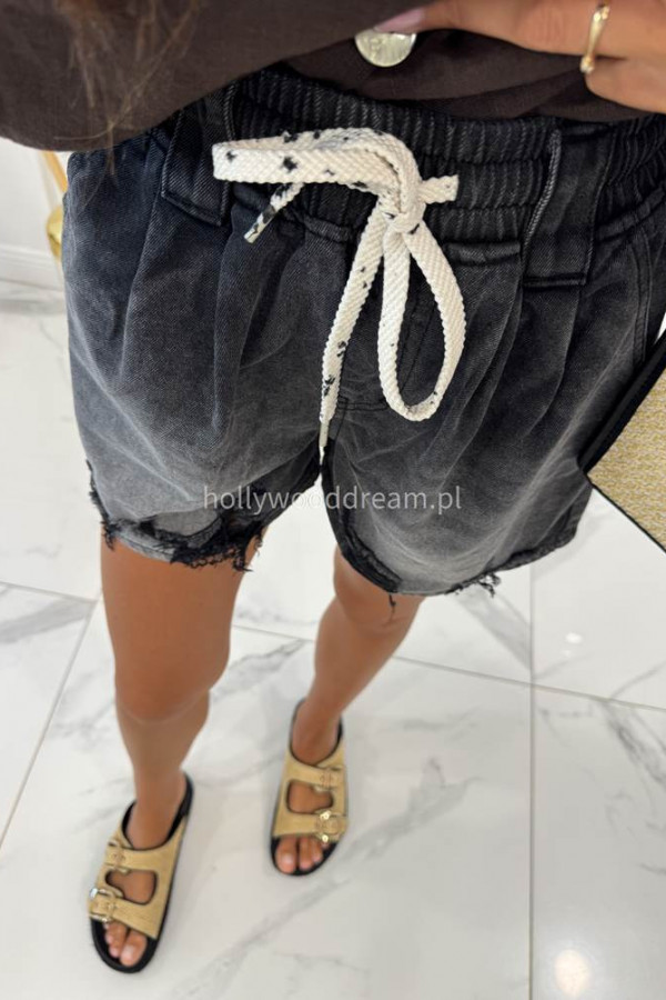 Spodenki jeans mom fit z białym sznurkiem KLAUDIA ciemno szare 06