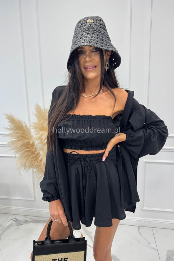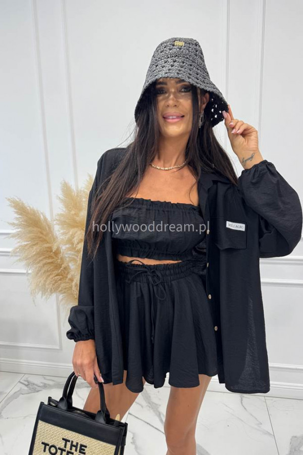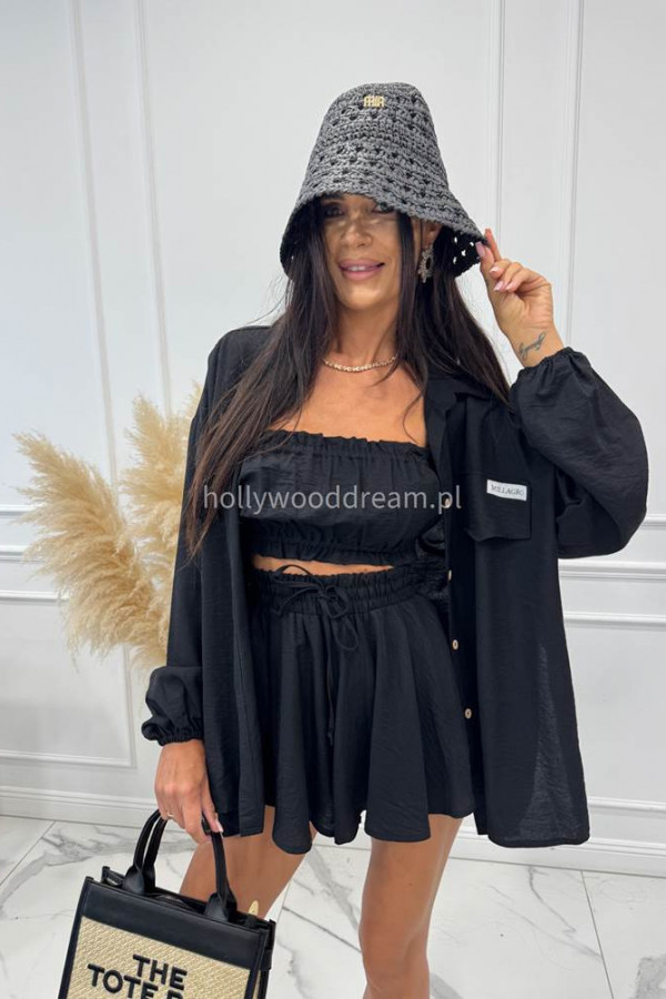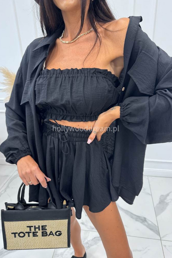 Komplet bawełniany 3-częściowy koszula+top+spodenki CITY BREAK czarny 163