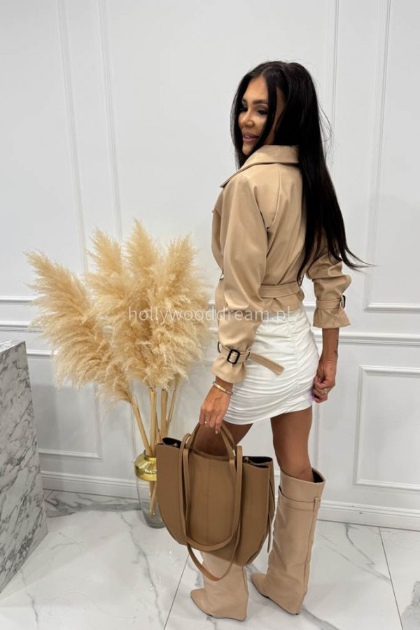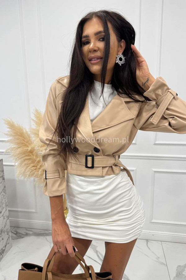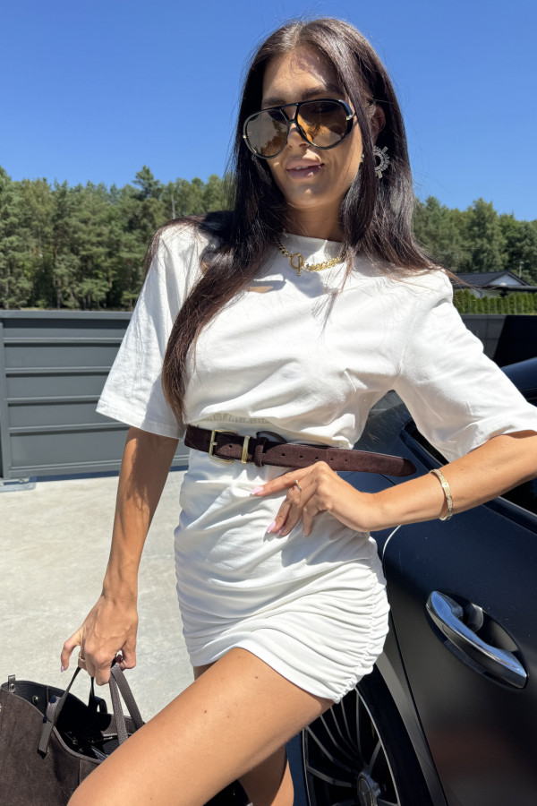 Sukienka mini bawełniana z marszczeniem kremowa ROKSI