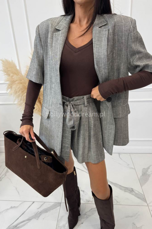 Marynarka z rękawem do łokcia z lnem i wiskozą MODERN szara 69