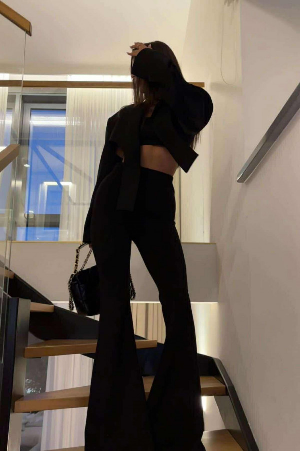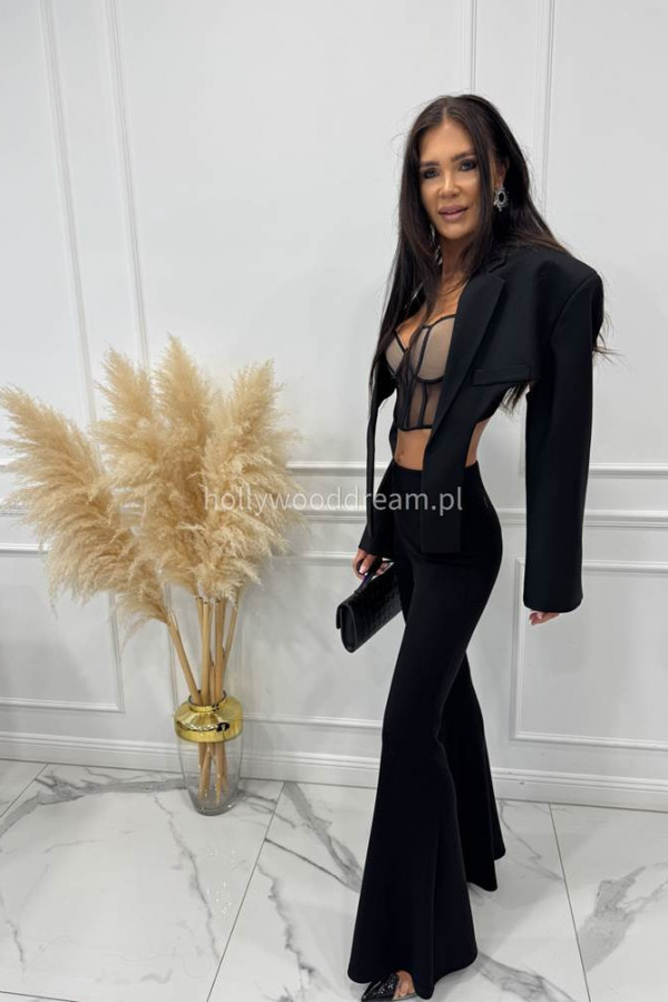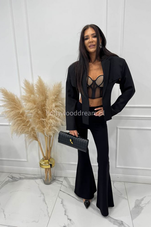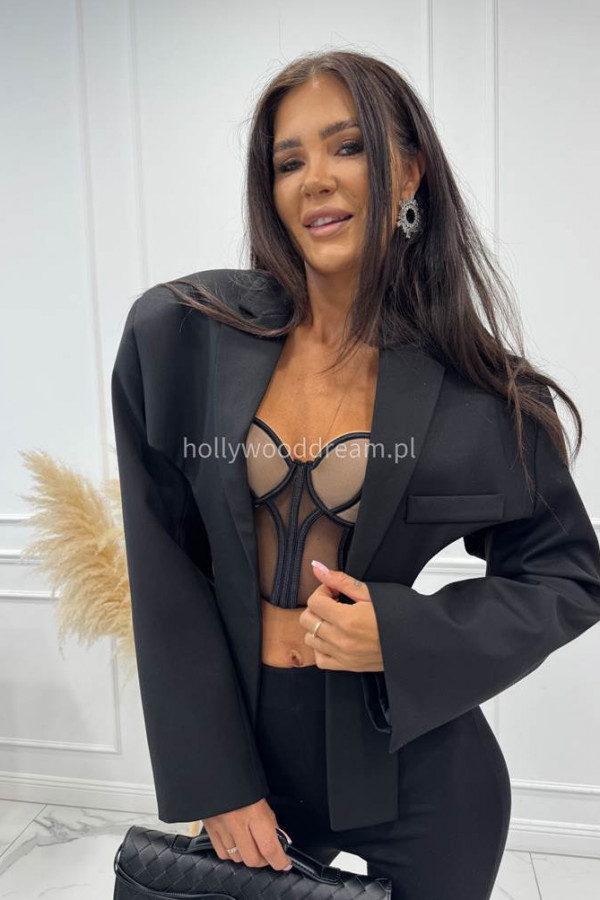 Marynarka krótka z wycięciami i ozdobnymi pasami czarna MILENA