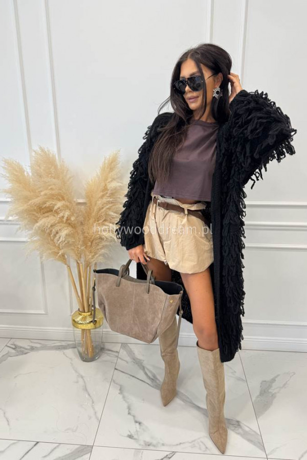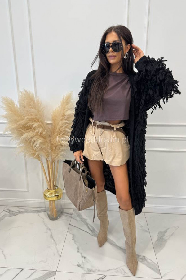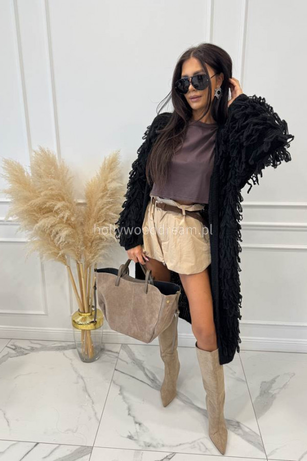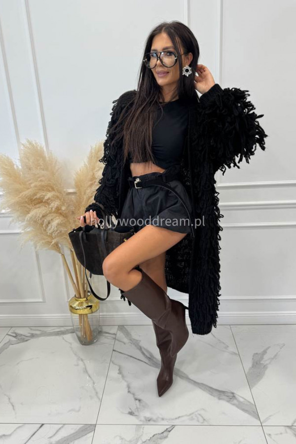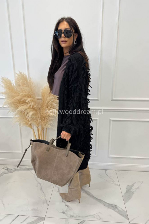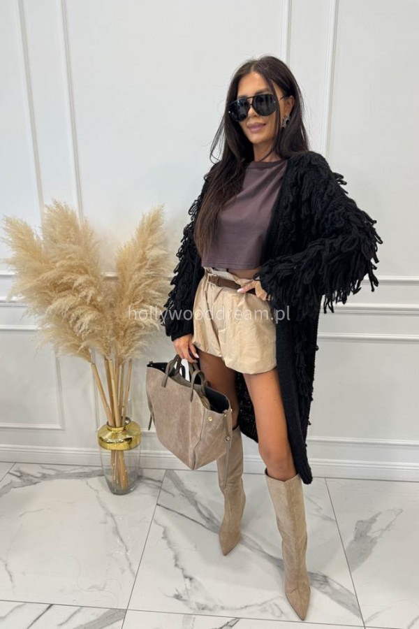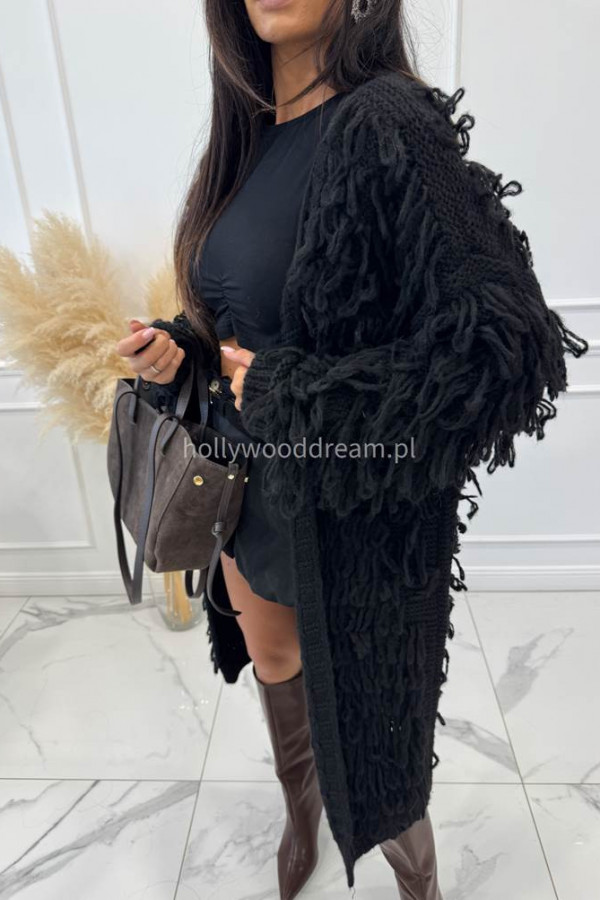 - Sweter długi z ozdobnymi frędzlami FERREO czarny