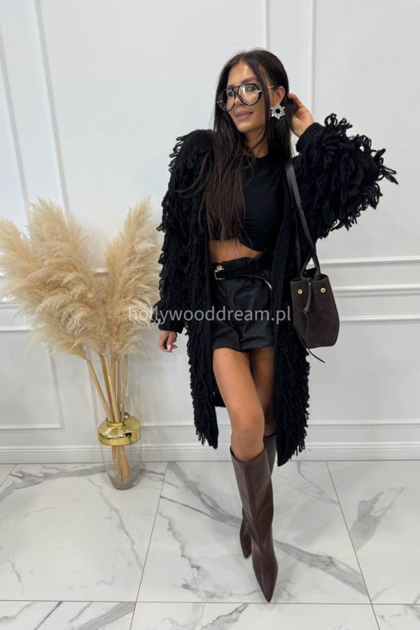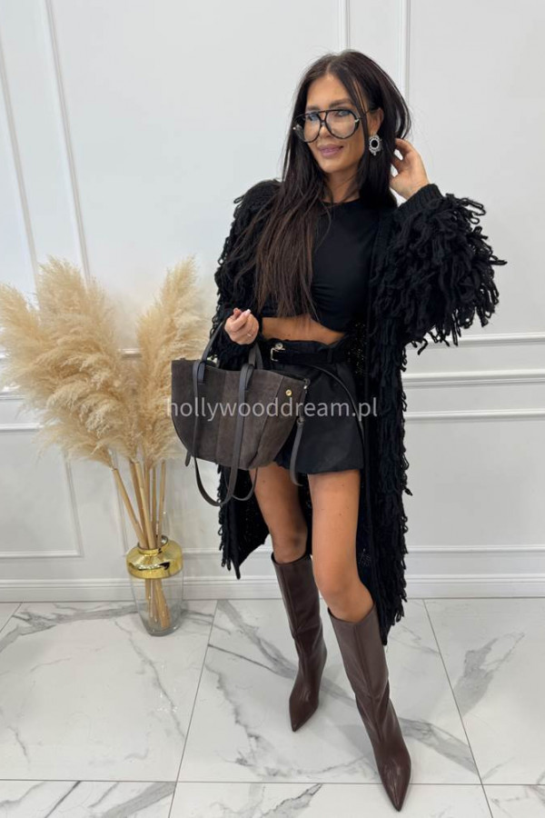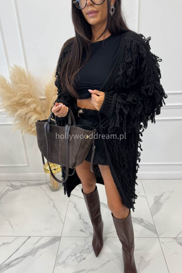 Sweter długi z ozdobnymi frędzlami czarny FERREO