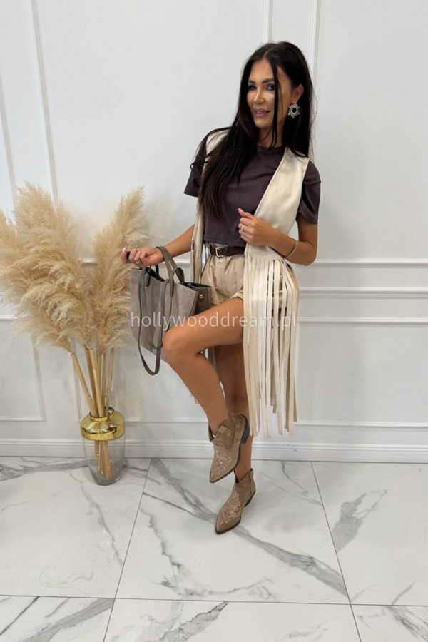 Kamizelka zamszowa z frędzlami długa FAUSTI jasno beżowa 02