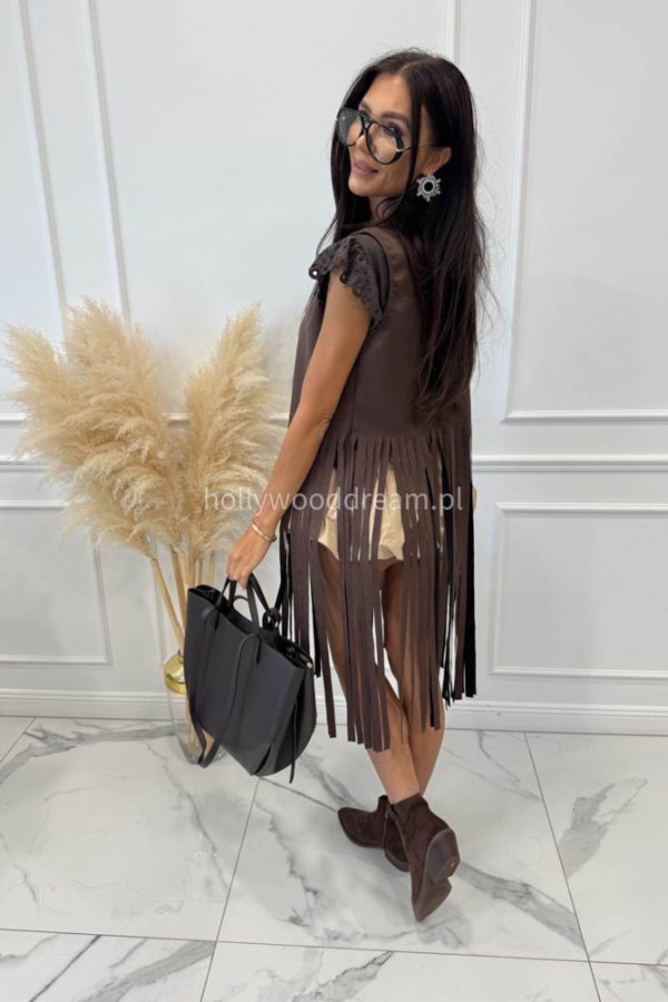 Kamizelka zamszowa z frędzlami długa FAUSTI czekoladowa 02