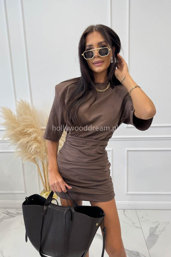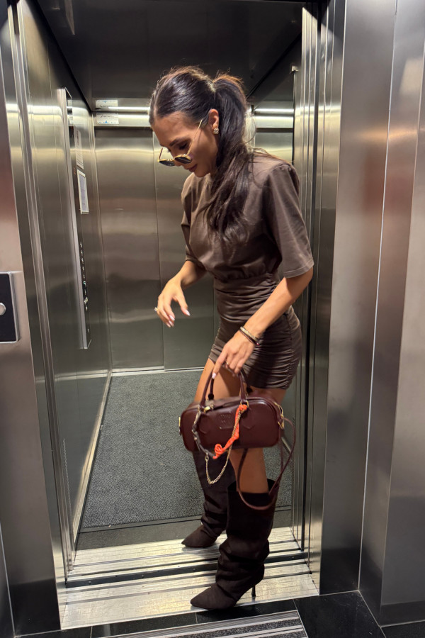 Sukienka mini bawełniana z marszczeniem ROKSI jasny brąz to esencja dziewczęcego uroku w nowoczesnym wydaniu. Uszyta z miękkiej, oddychającej bawełny, świetnie sprawdzi się w ciepłe dni, gwarantując komfort noszenia i swobodę ruchów. Jej mini długość subtelnie podkreśla nogi, a marszczenia z przodu i po bokach dodają sylwetce lekkości i modelują kształty. Dopasowany krój w połączeniu z elastycznym materiałem sprawia, że sukienka świetnie układa się na ciele i podkreśla kobiece atuty. To idealna propozycja zarówno na codzienne wyjścia, jak i letnie imprezy czy randki. Sukienka bawełniana ROKSI doskonale wygląda z trampkami, sandałami lub espadrylami – w zależności od okazji.