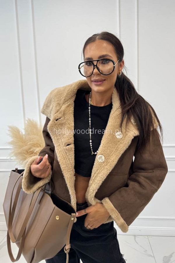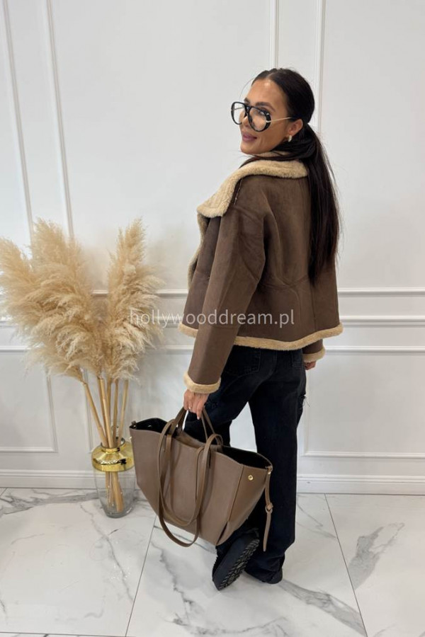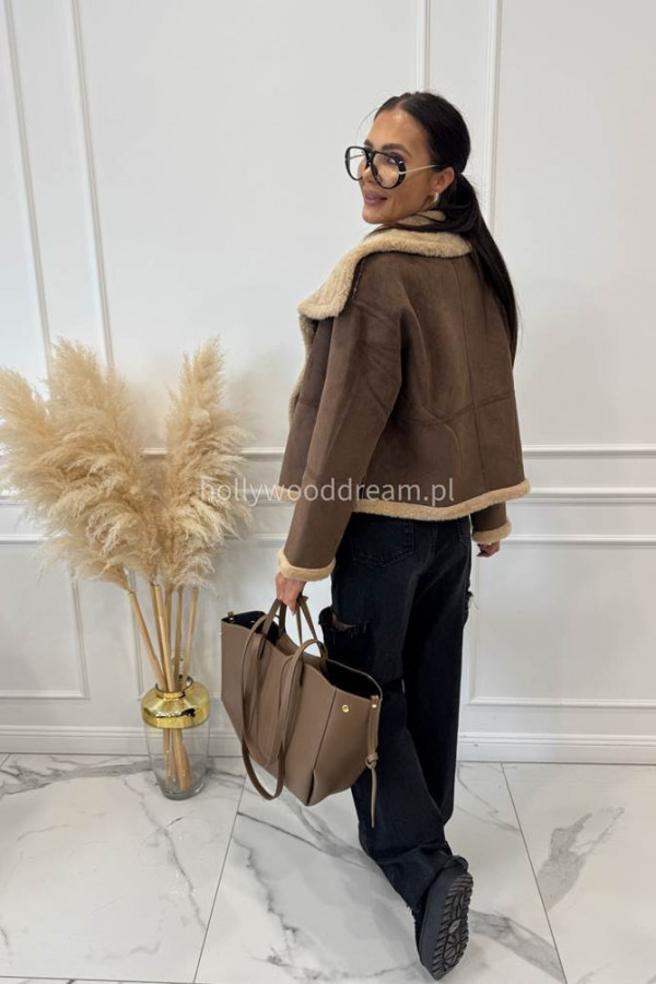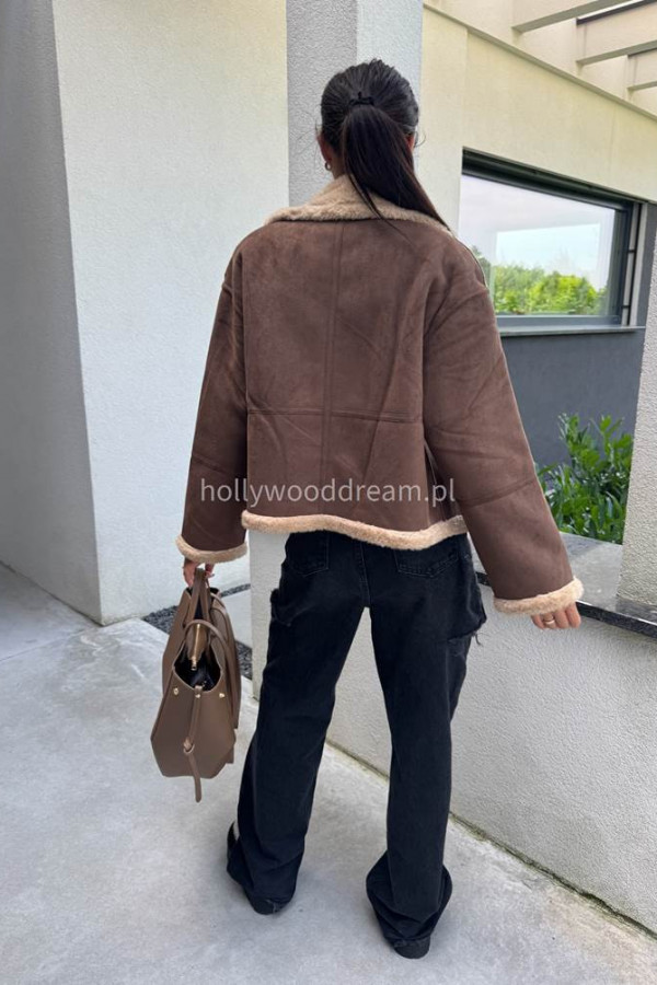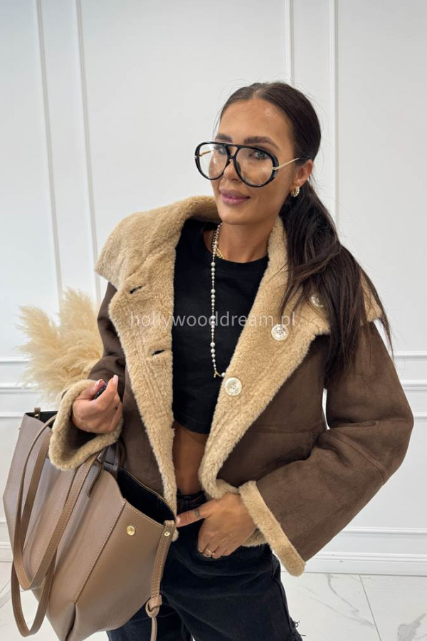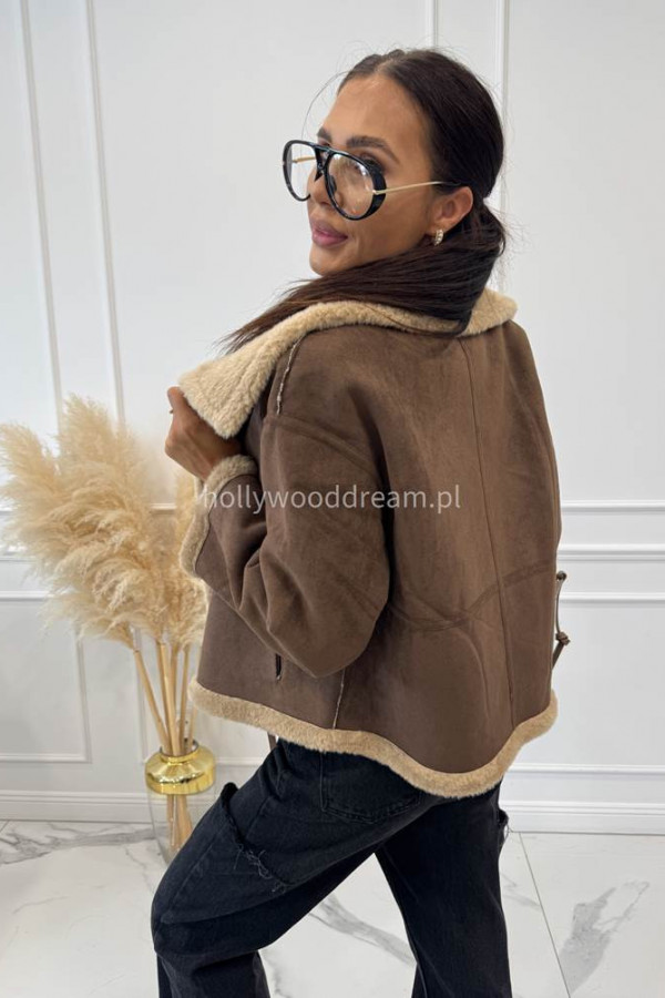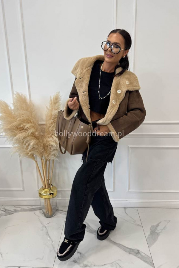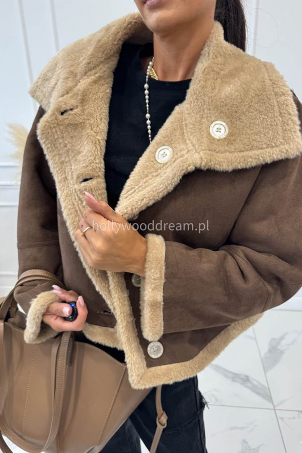 Kurtka zamszowa dwustronna z kożuszkiem czekoladowo-beżowa WENDY