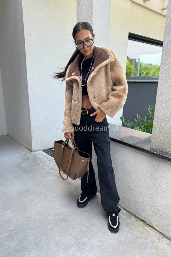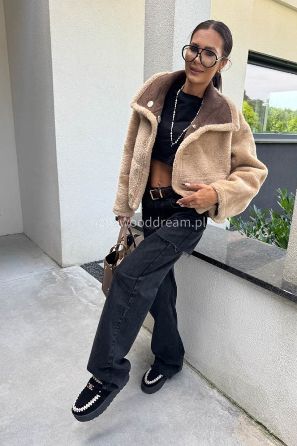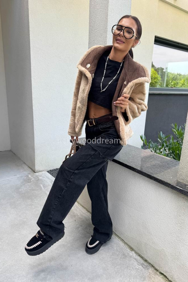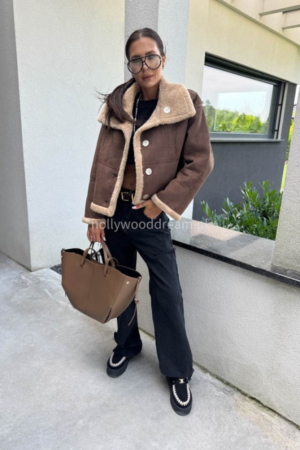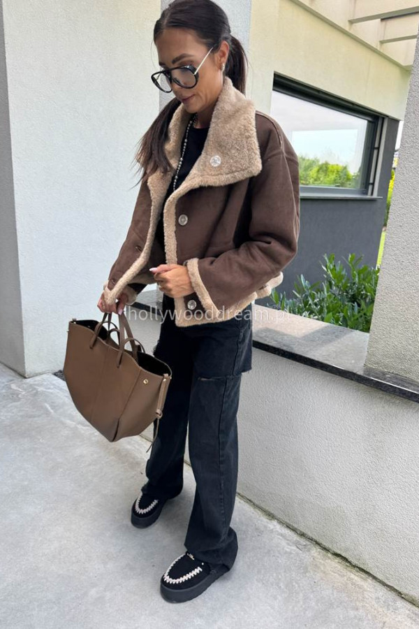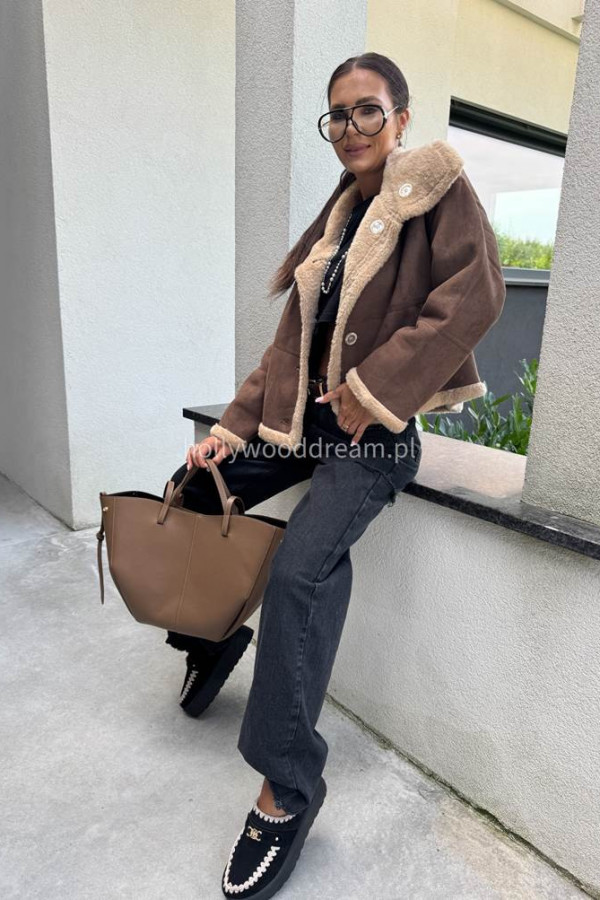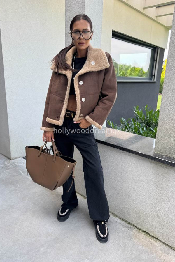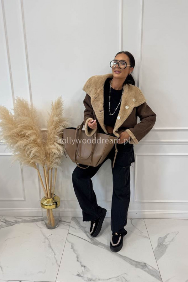 - Kurtka zamszowa dwustronna z kożuszkiem WENDY czekoladowo-beżowa