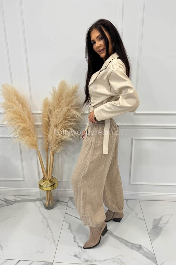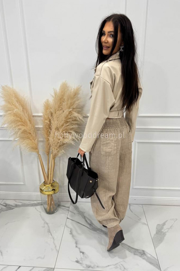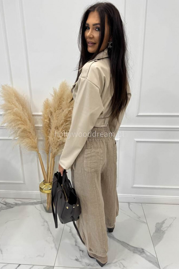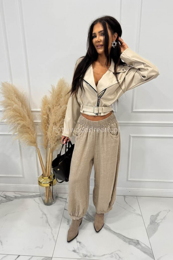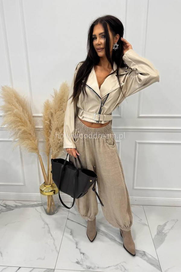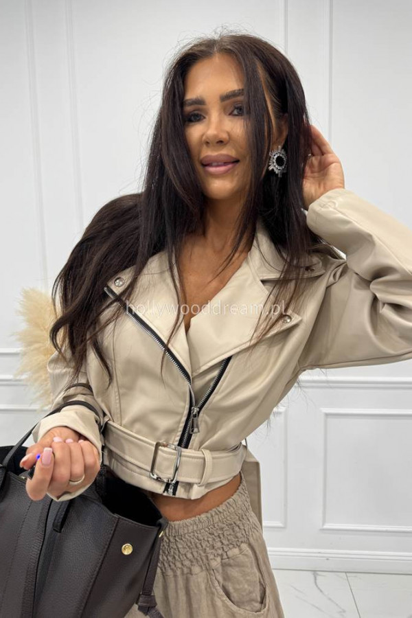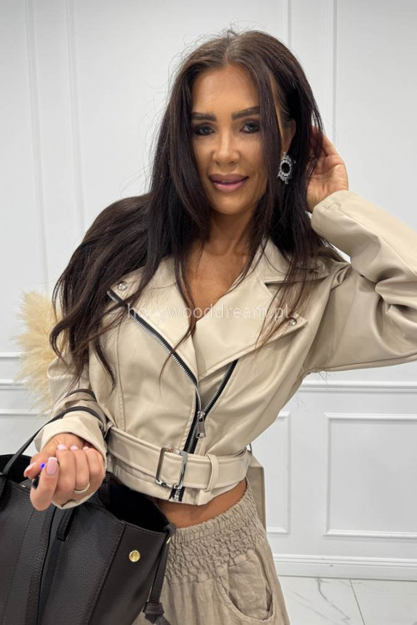 - Ramoneska skórzana z paskiem KATRIN beżowa