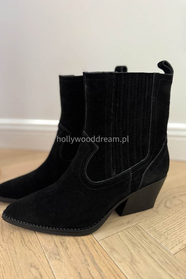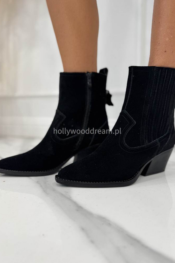 Buty kowbojki krótkie w szpic zamszowe czarne TYMON