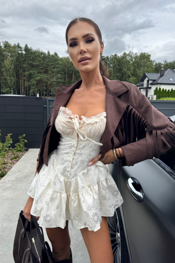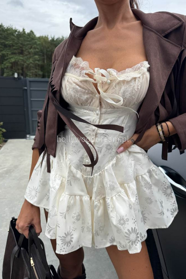 Sukienko-kombinezon z guzikami i falbaną kremowy PRINCESS
