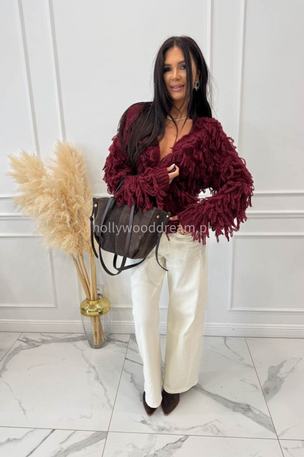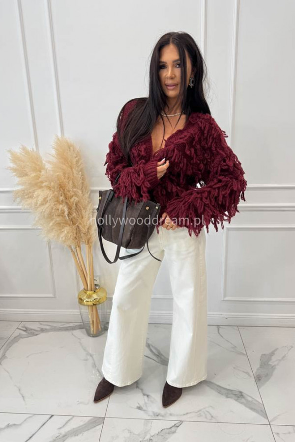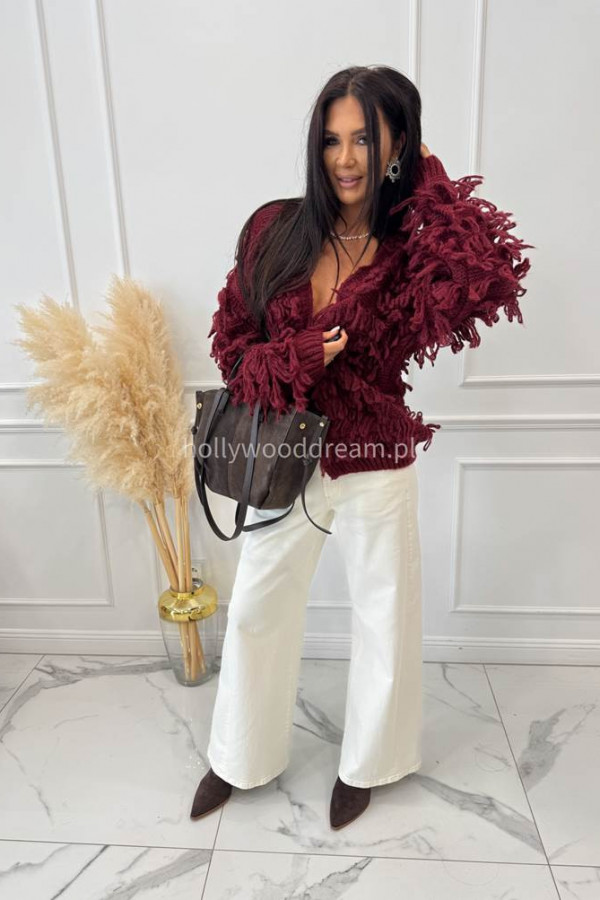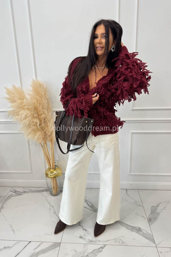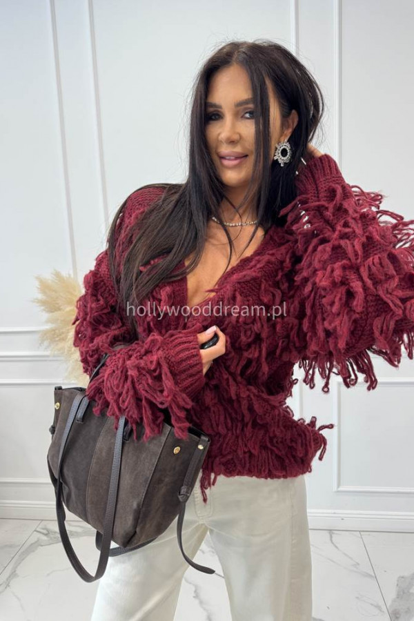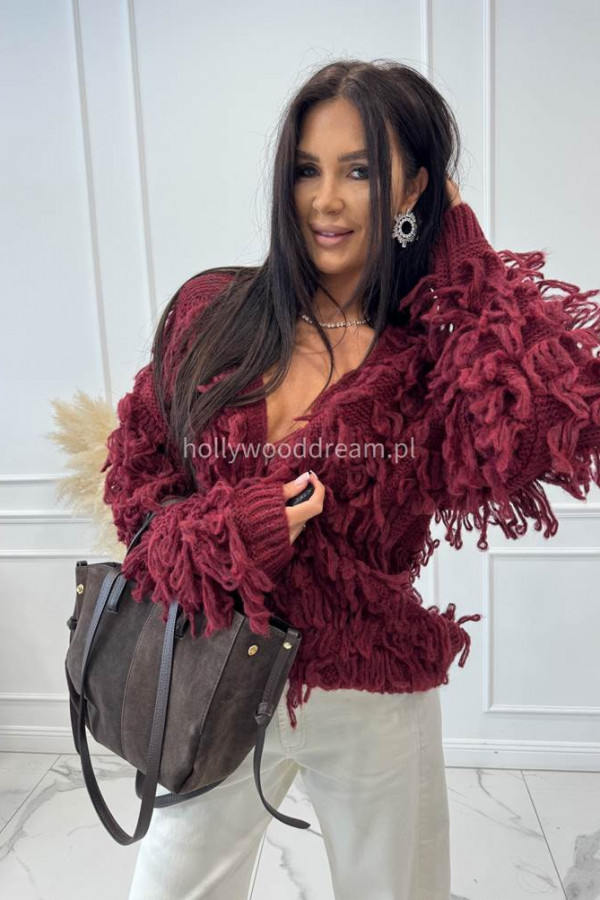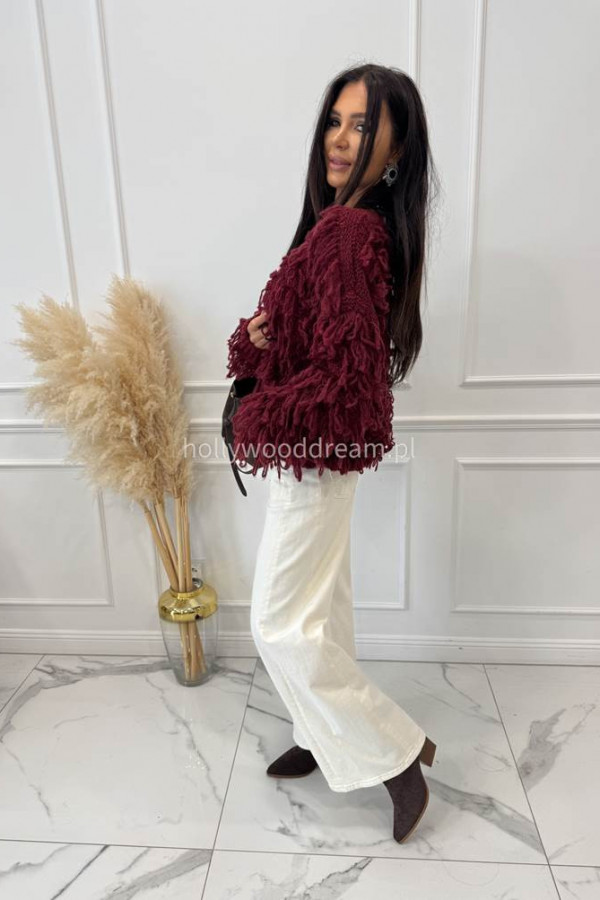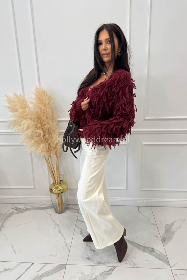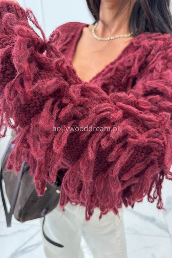 Sweter z ozdobnymi frędzlami bordowy Nari