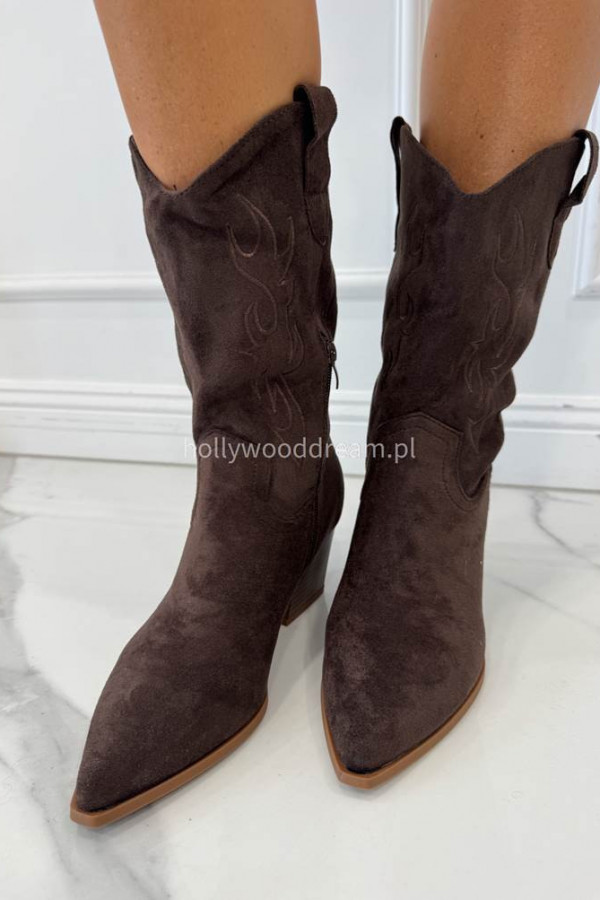 Buty kowbojki wysokie zamszowe brązowe ARIZONA