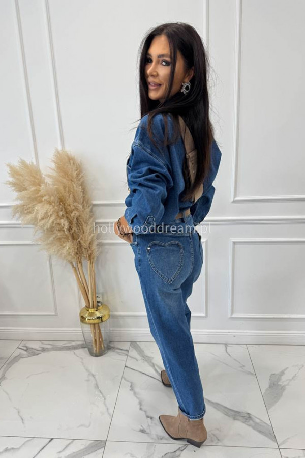 Spodnie boyfriend średni stan z sercem na kieszeniach ciemny jeans LOPEZ