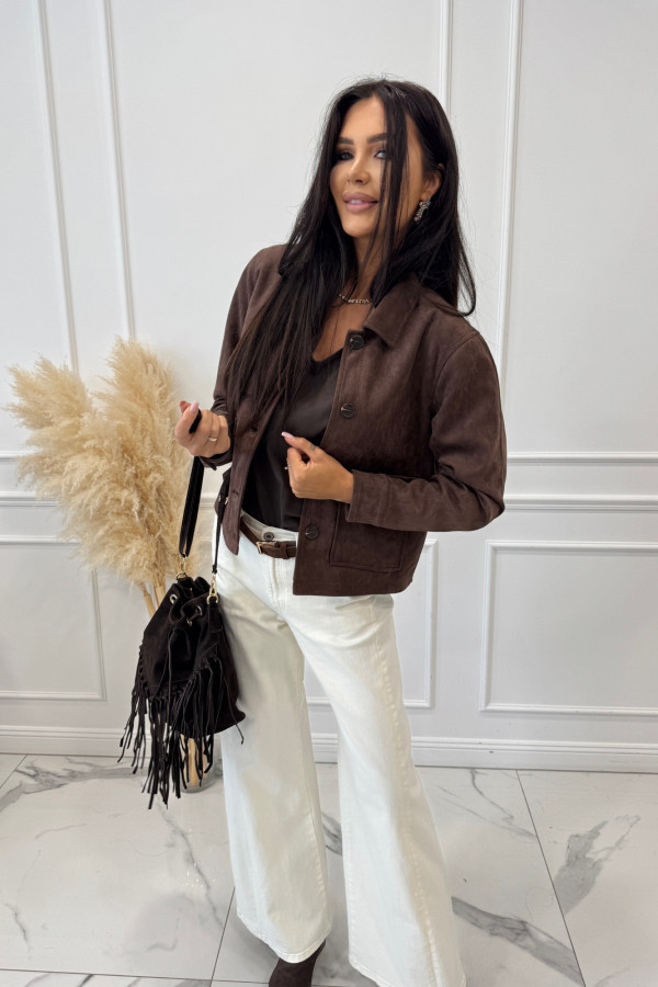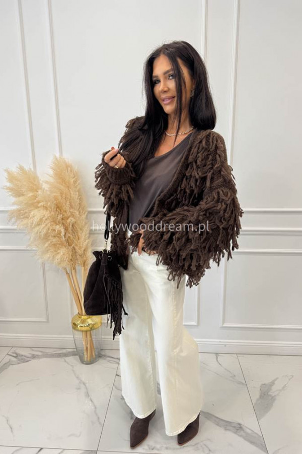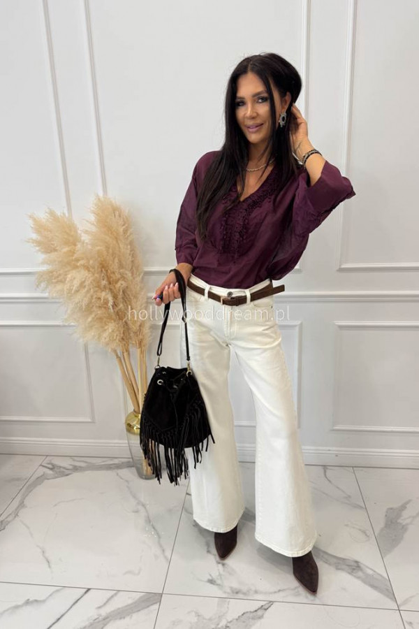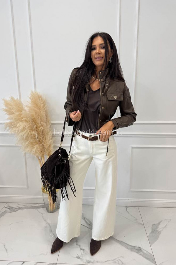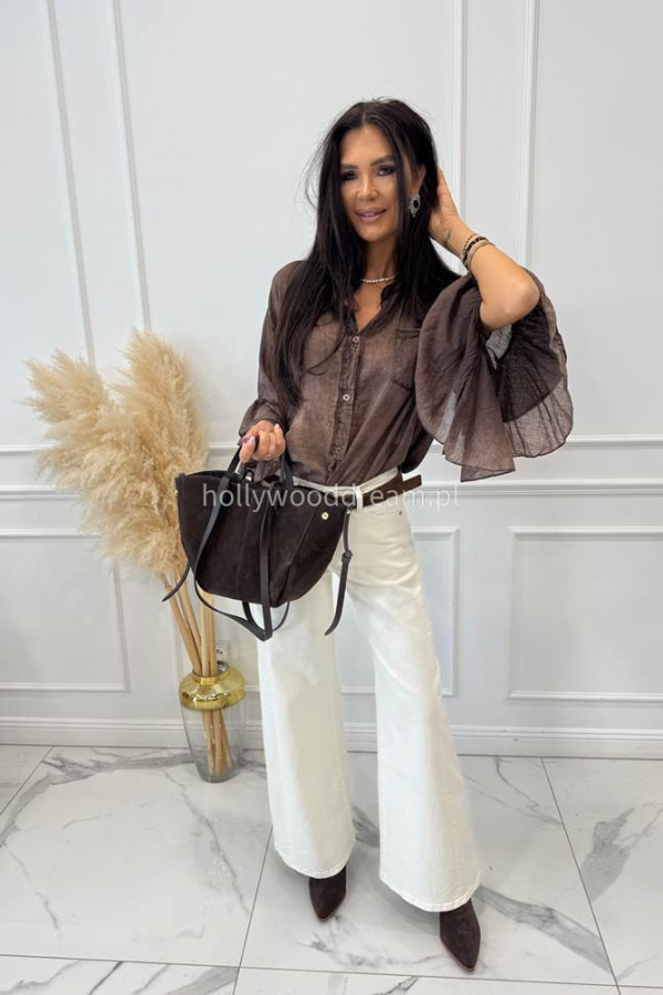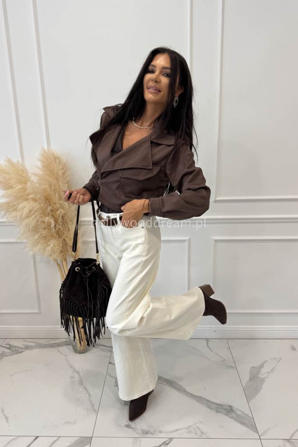 - Spodnie jeansowe bawełniane z szeroką nogawką czekoladowe RAFIL