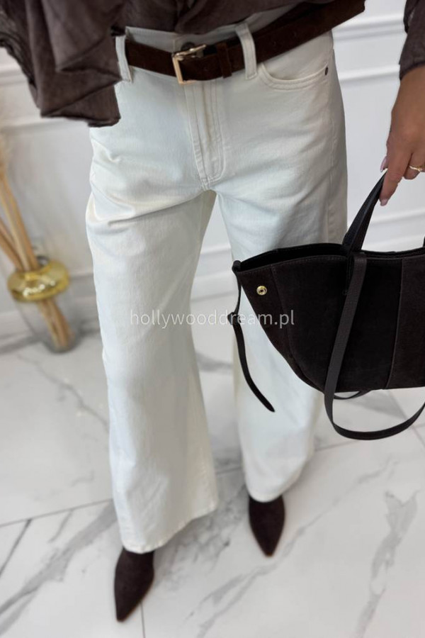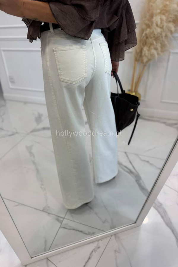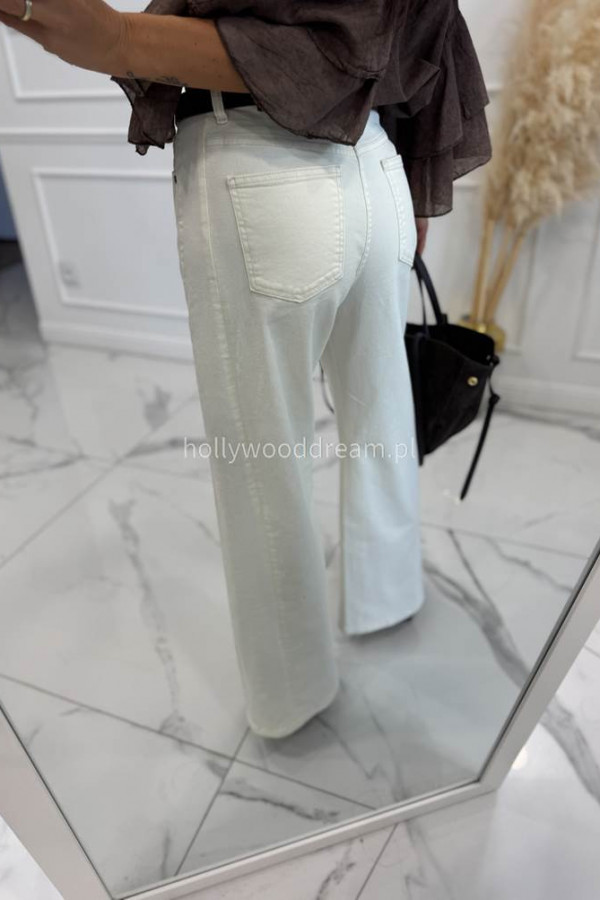 Spodnie jeansowe bawełniane z szeroką nogawką kremowe RAFIL