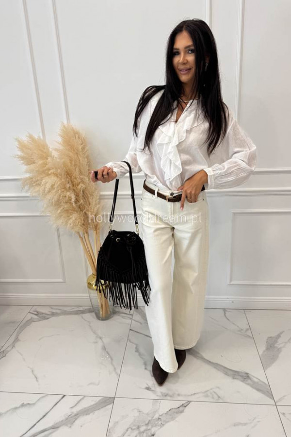 Kremowe spodnie jeansowe z szeroką nogawką RAFIL bawełniane to modna alternatywa dla klasycznych niebieskich jeansów. Wykonane z wysokiej jakości bawełny z dodatkiem elastanu, zapewniają komfort noszenia i swobodę ruchów. Spodnie RAFIL mają szeroki krój, który dobrze leży na sylwetce i świetnie komponuje się zarówno z T-shirtem, jak i koszulą. Ten kremowy odcień to hit sezonu – idealny wybór dla kobiet które, cenią styl, wygodę i uniwersalność.