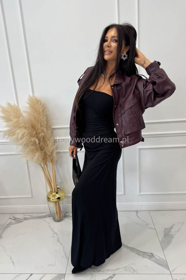 - Sukienka maxi tuba bez ramiączek z wiskozą czarna ELIZA