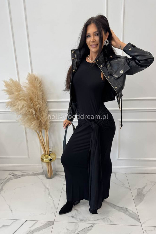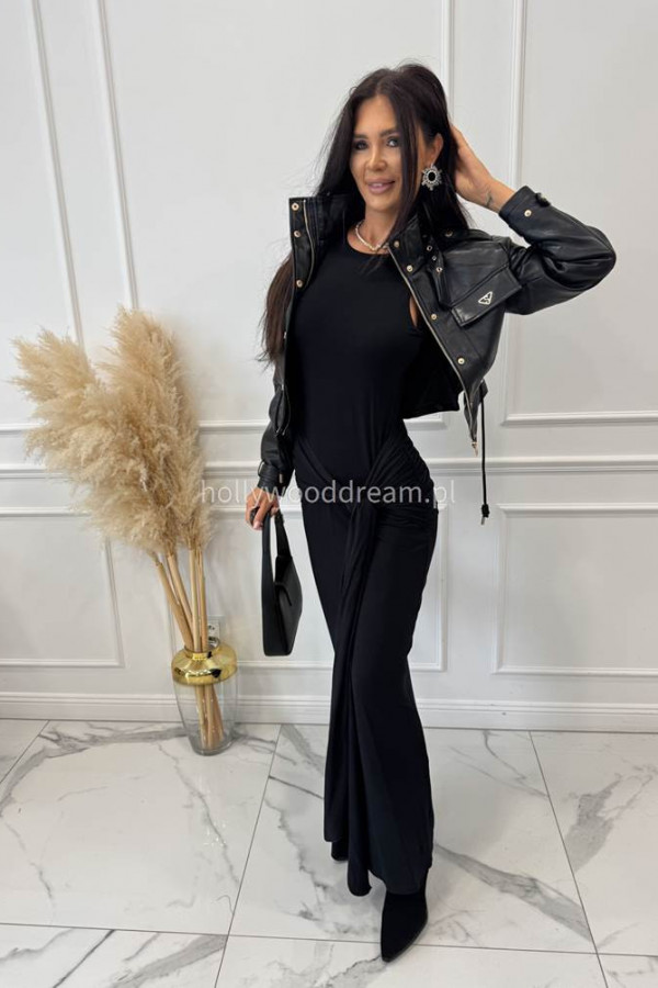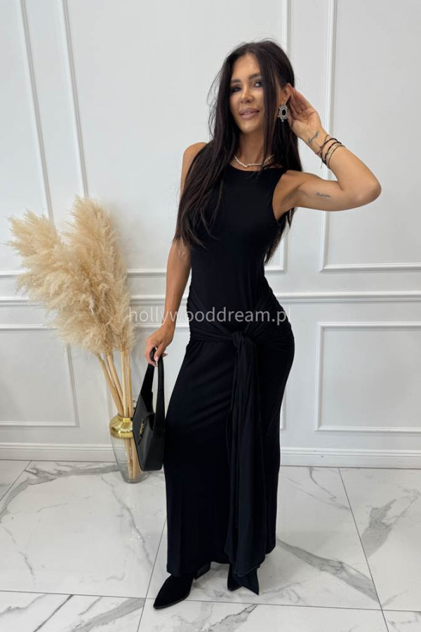 - Sukienka maxi na ramiączkach z wiązaniem i marszczeniem czarna TINA
