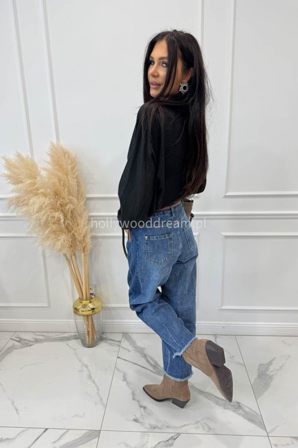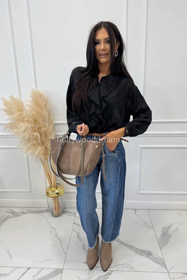 Czarna bluzka IRMA to elegancka propozycja z efektowną falbaną z przodu, która dodaje jej wyrazistego charakteru. Klasyczny kolor i kobiece detale sprawiają, że doskonale sprawdzi się zarówno w stylizacjach biurowych, jak i wieczorowych. Wykonana z przyjemnego materiału, zapewnia komfort noszenia przez cały dzień. To must-have w każdej stylowej garderobie.