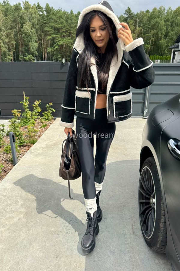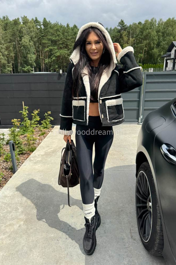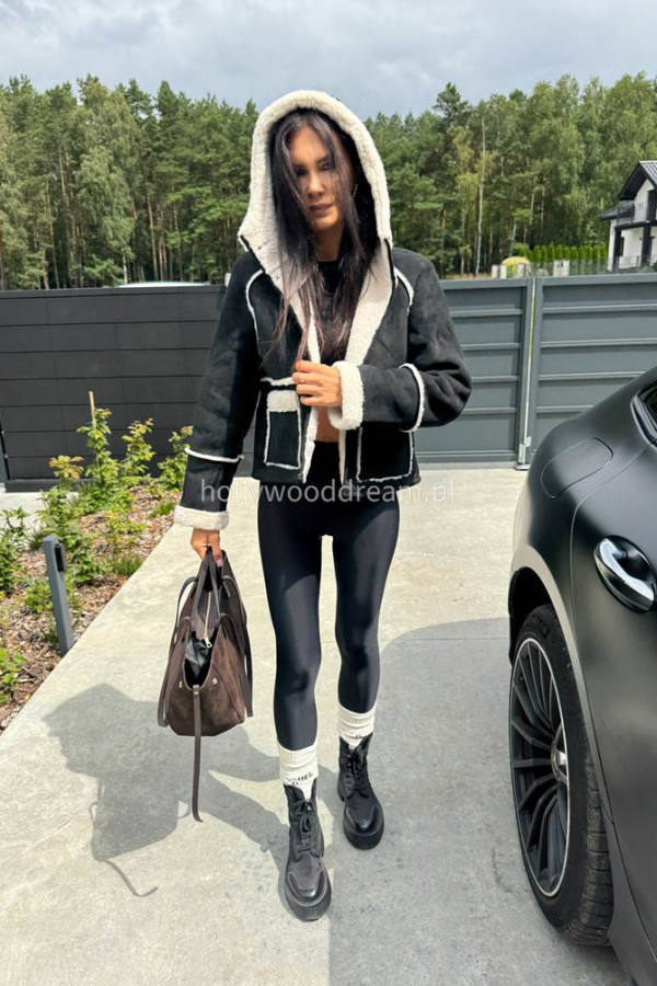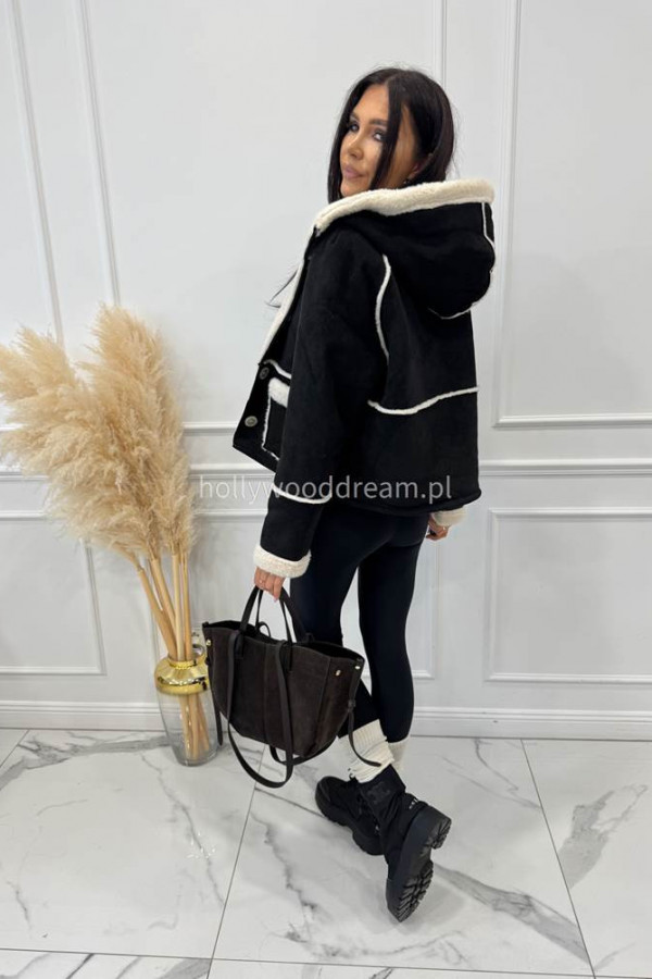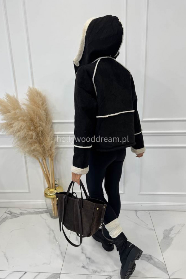 - Kurtka zamszowa z kożuszkiem i kapturem czarna MORENA