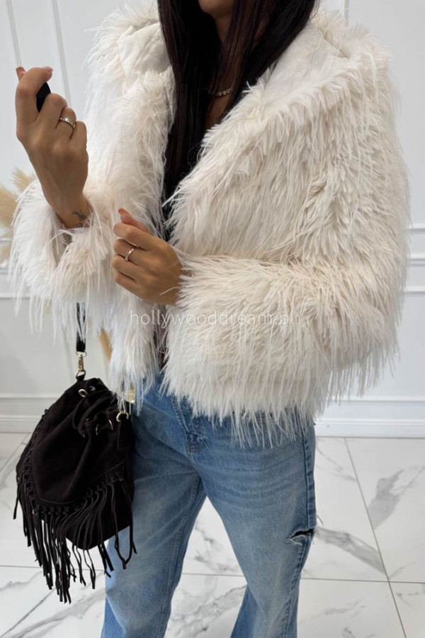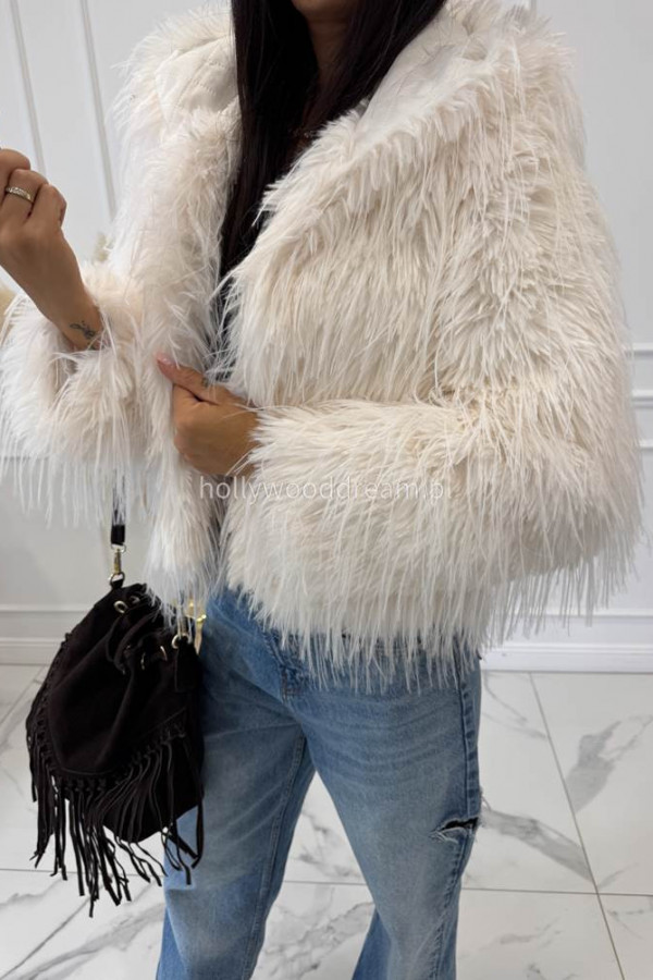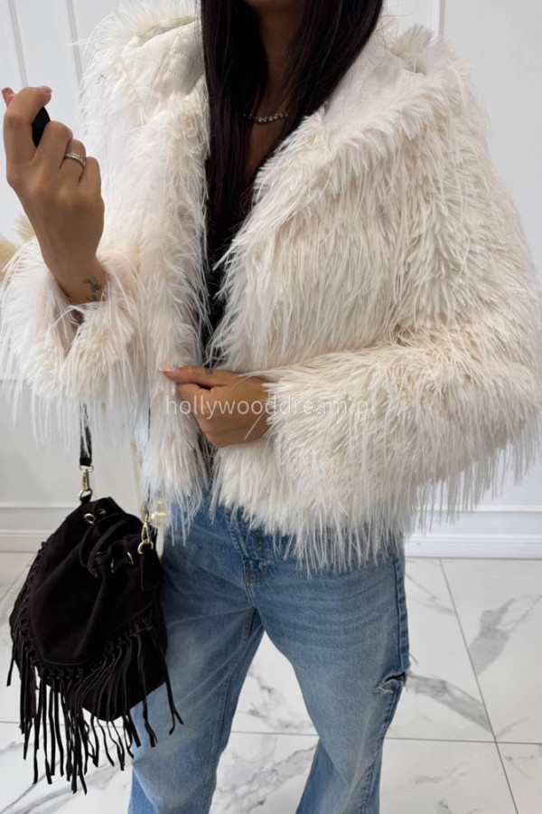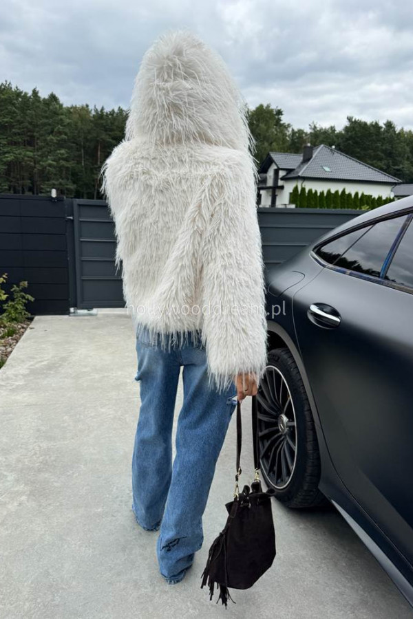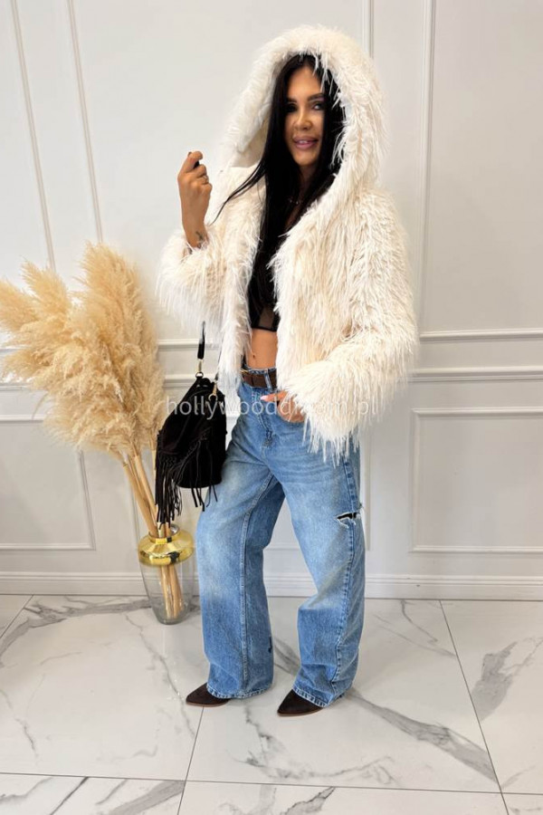 Futro z długim włosiem i kapturem kremowe LORENZO