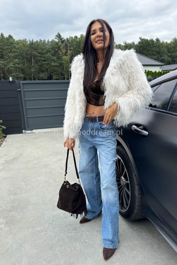 Futro z długim włosiem i kapturem kremowe LORENZO to elegancki model w klasycznej odsłonie ,zapinany na dyskretne haftki. Wykonane w 100% z poliestru, jest lekkie, miękkie i przyjemne w dotyku. Kaptur dodaje szyku, a minimalistyczna forma sprawia, że doskonale komponuje się zarówno z sukienką, jak i jeansami. Idealne na chłodniejsze dni i wieczorne wyjścia.