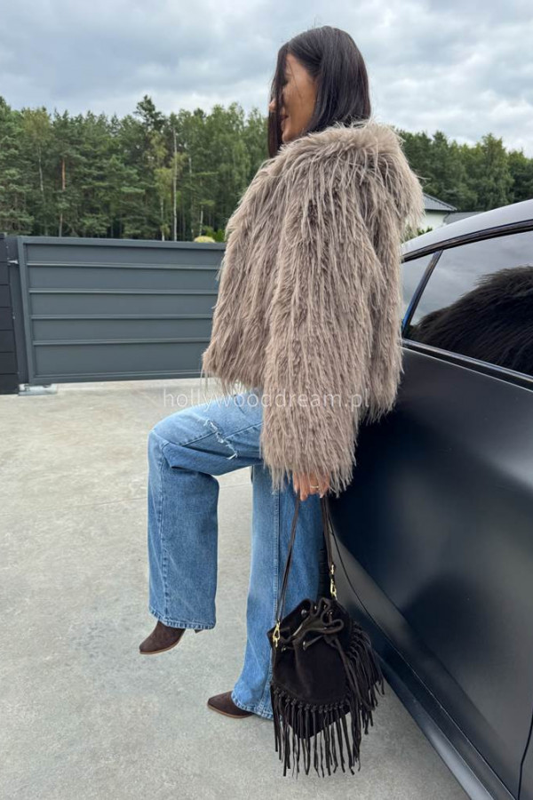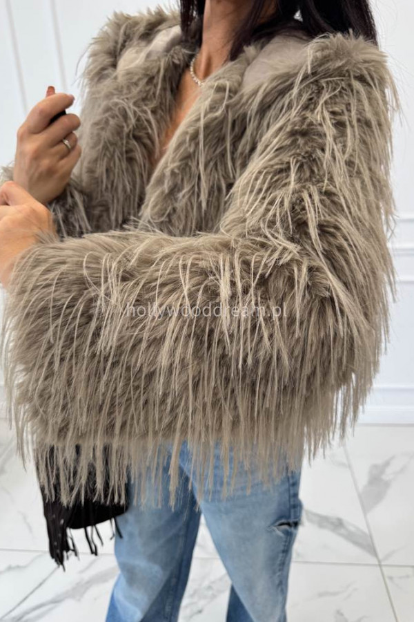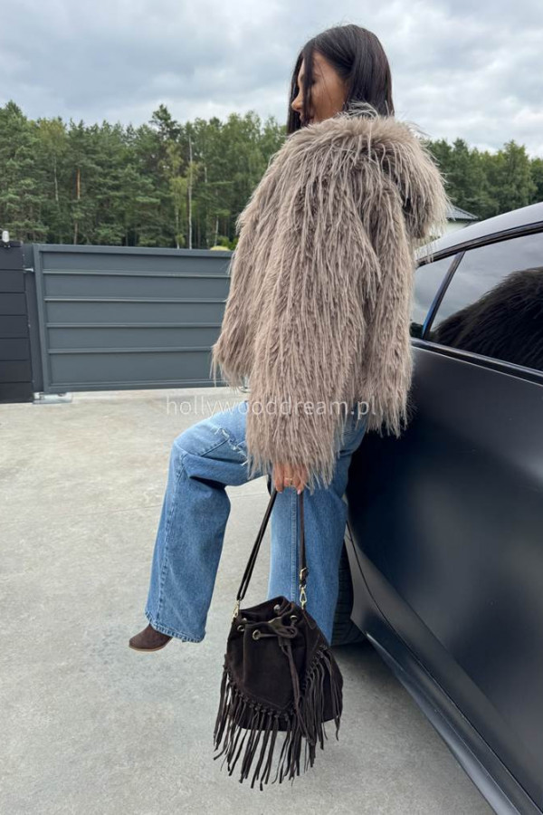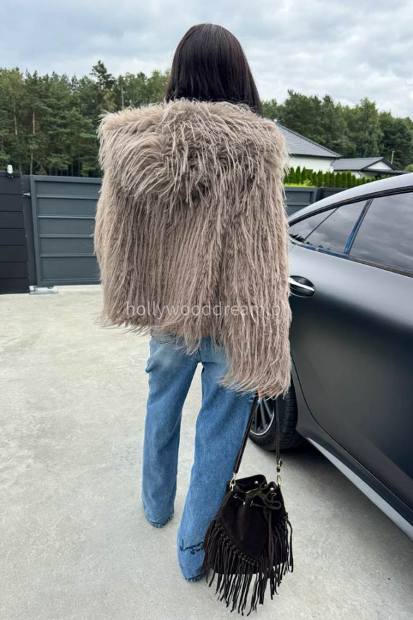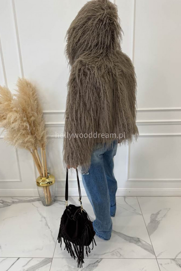 Futro z długim włosiem i kapturem mleczna czekolada LORENZO to elegancki model w klasycznej odsłonie ,zapinany na dyskretne haftki. Wykonane w 100% z poliestru, jest lekkie, miękkie i przyjemne w dotyku. Kaptur dodaje szyku, a minimalistyczna forma sprawia, że doskonale komponuje się zarówno z sukienką, jak i jeansami. Idealne na chłodniejsze dni i wieczorne wyjścia.