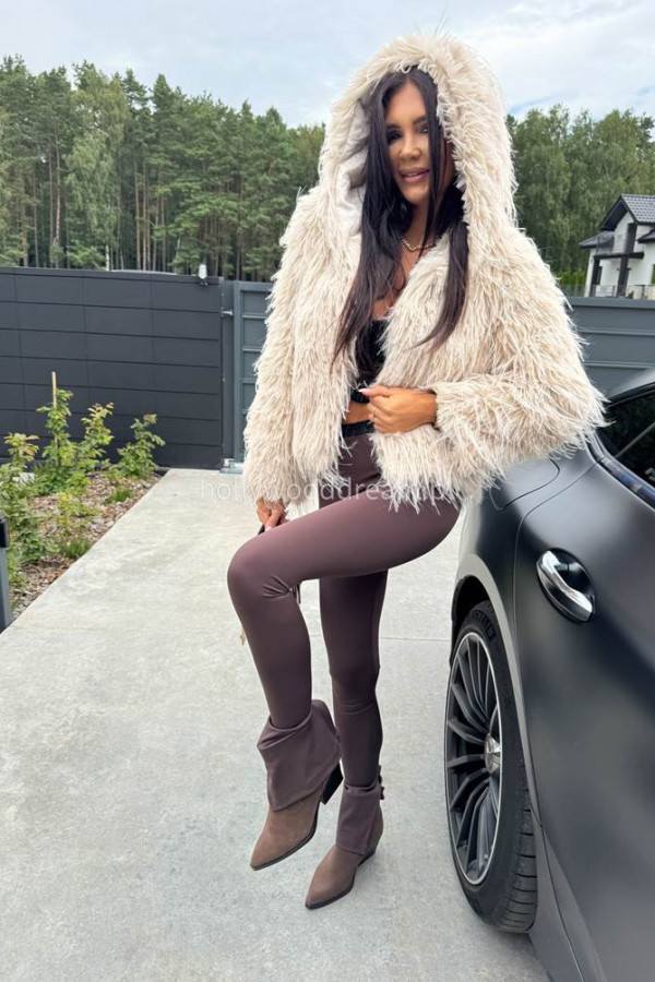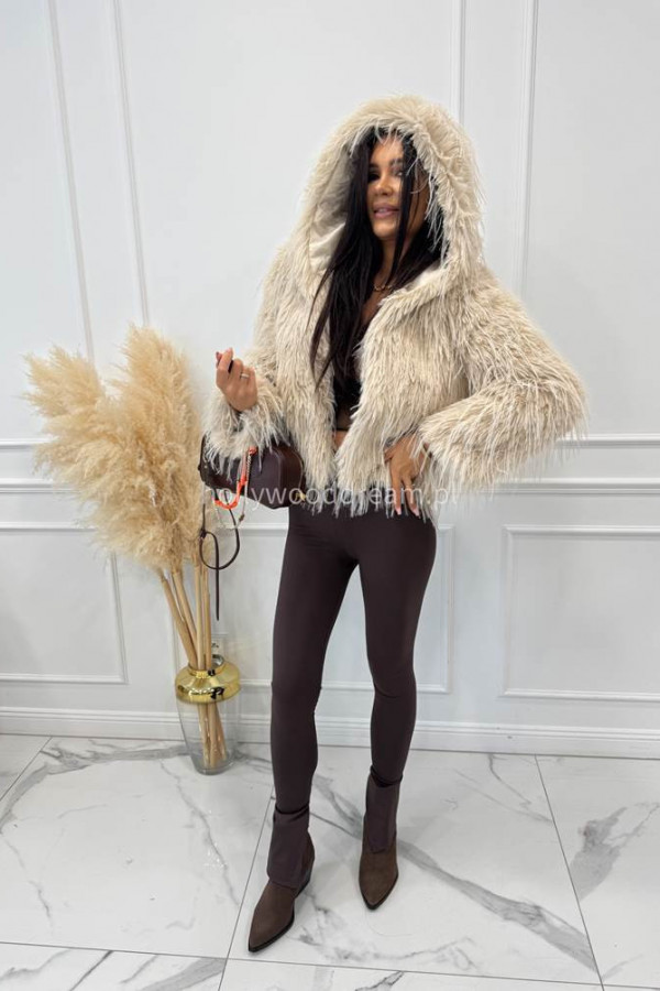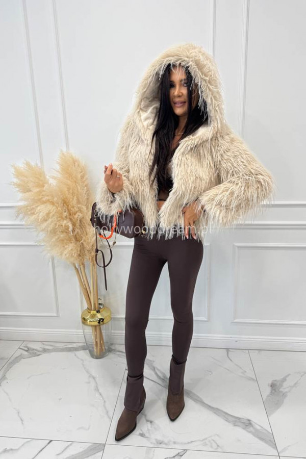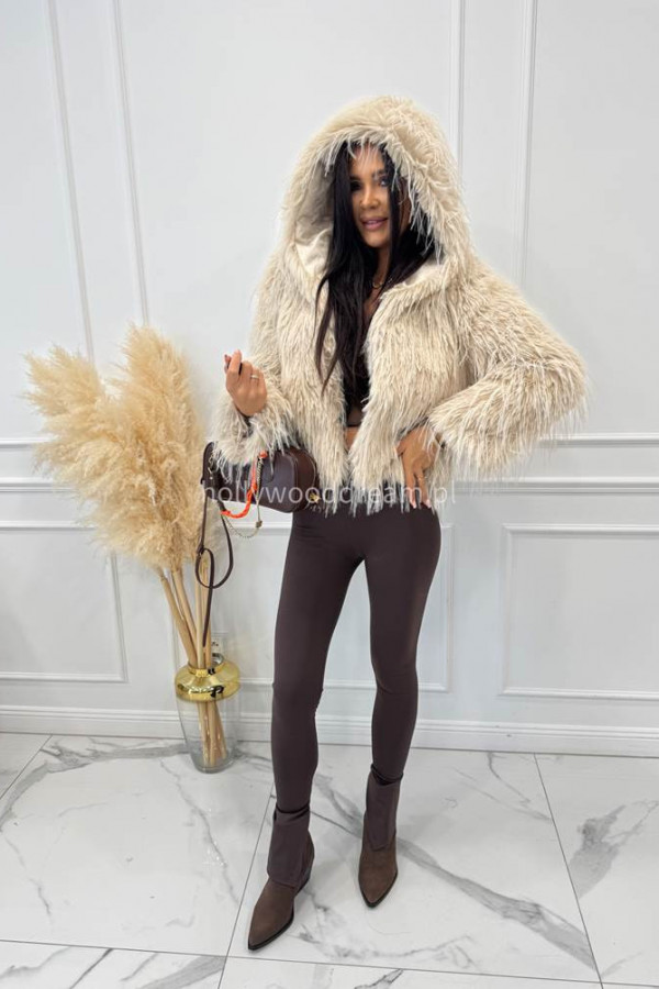 Futro z długim włosiem i kapturem beżowe LORENZO