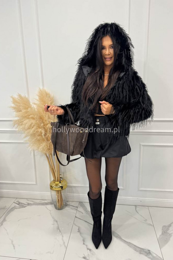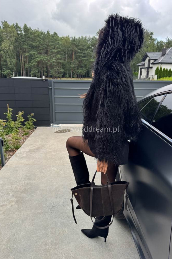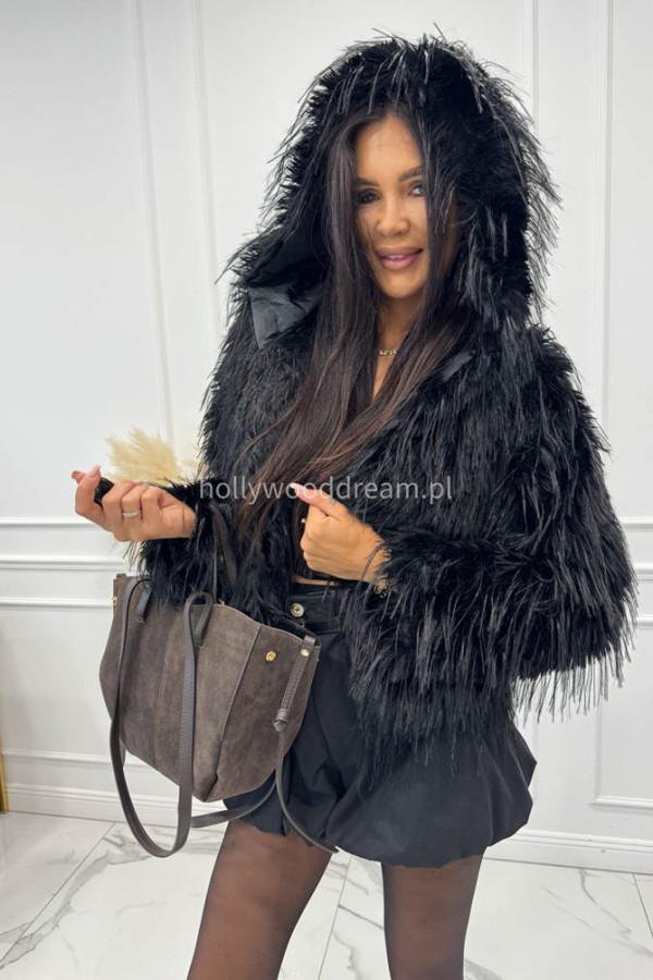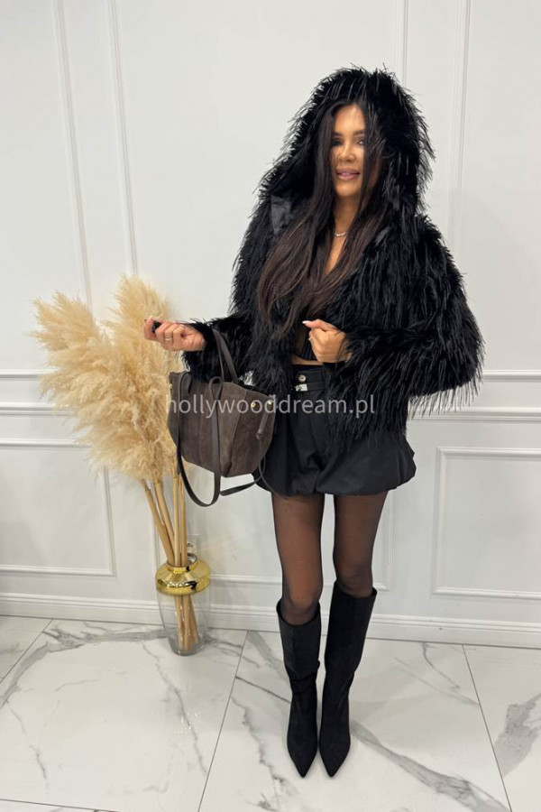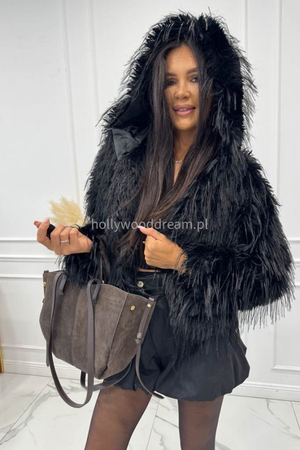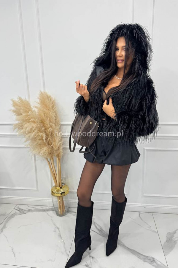 Futro z długim włosiem i kapturem czarne LORENZO to elegancki model w klasycznej odsłonie ,zapinany na dyskretne haftki. Wykonane w 100% z poliestru, jest lekkie, miękkie i przyjemne w dotyku. Kaptur dodaje szyku, a minimalistyczna forma sprawia, że doskonale komponuje się zarówno z sukienką, jak i jeansami. Idealne na chłodniejsze dni i wieczorne wyjścia.