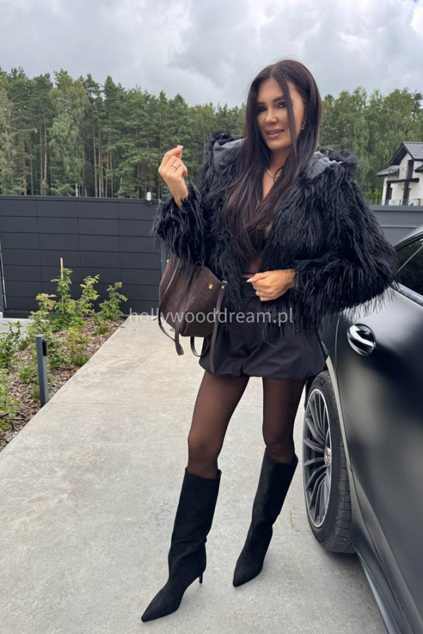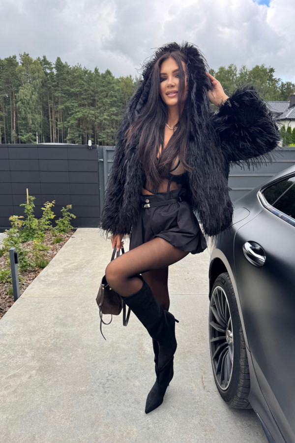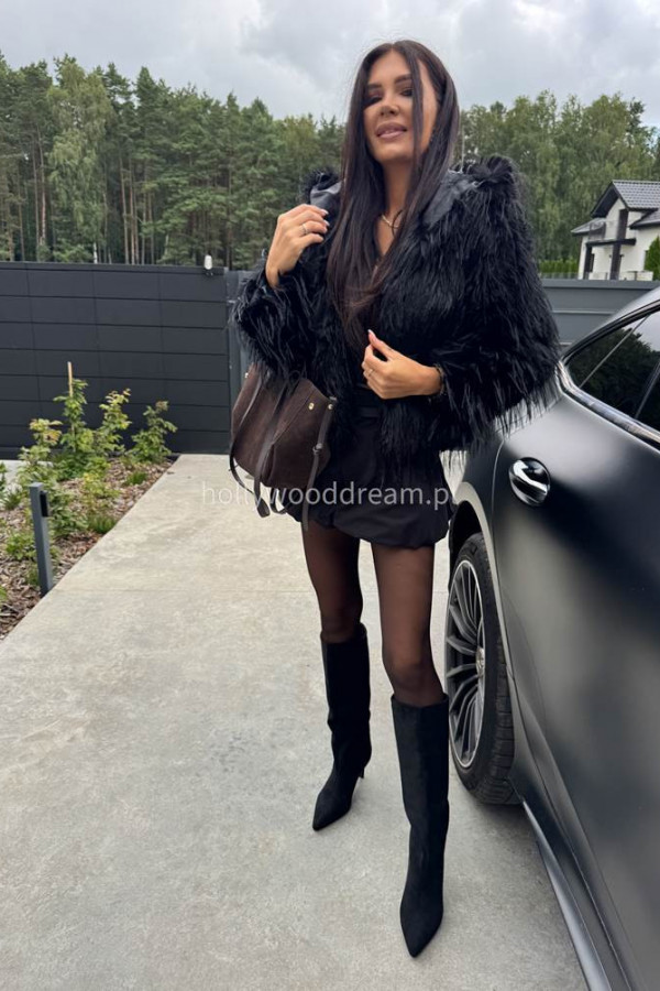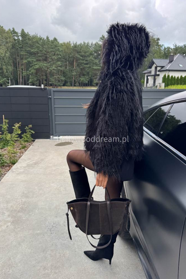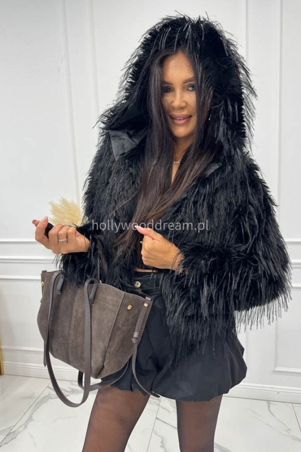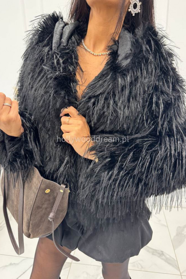 Futro z długim włosiem i kapturem czarne LORENZO to elegancki model w klasycznej odsłonie ,zapinany na dyskretne haftki. Wykonane w 100% z poliestru, jest lekkie, miękkie i przyjemne w dotyku. Kaptur dodaje szyku, a minimalistyczna forma sprawia, że doskonale komponuje się zarówno z sukienką, jak i jeansami. Idealne na chłodniejsze dni i wieczorne wyjścia.
