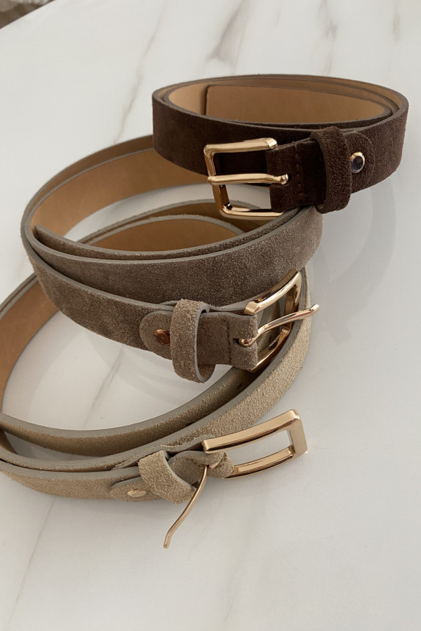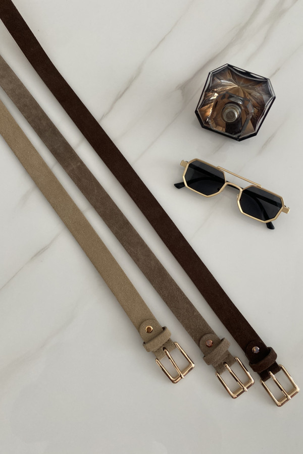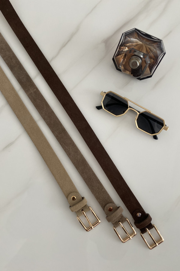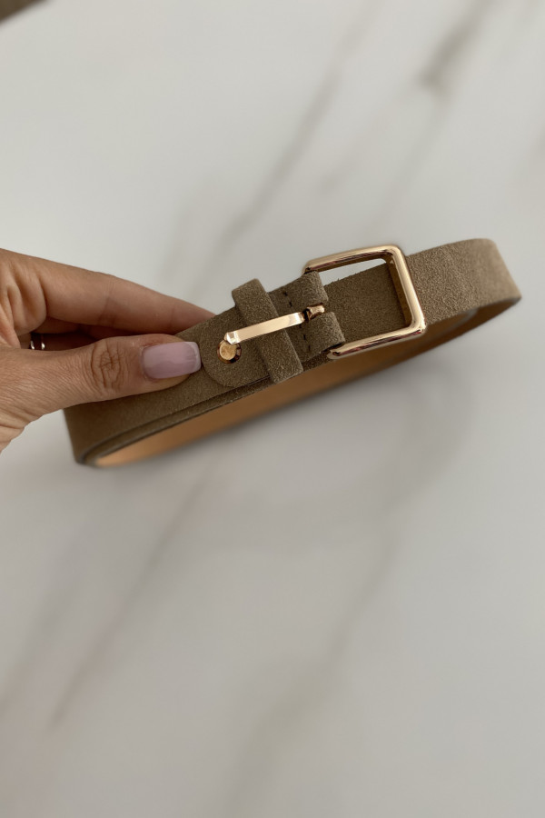 Pasek wąski zamszowy mokka LUPO to idealny dodatek do każdej stylizacji. Charakteryzuje się trwałością i ponadczasowym designem. Wąski fason podkreśla kobiecą sylwetkę, a możliwość regulacji pozwala idealnie dopasować pasek do obwodu talii lub bioder. Świetnie sprawdzi się zarówno do eleganckich sukienek, jak i codziennych jeansów czy spódnic. Dodaj klasy do swojego outfitu z paskiem Lupo!