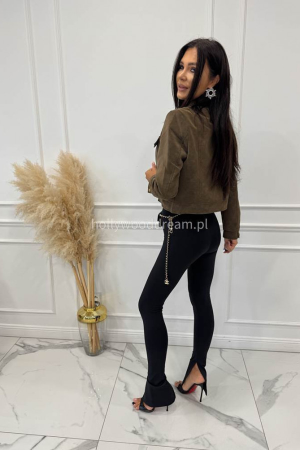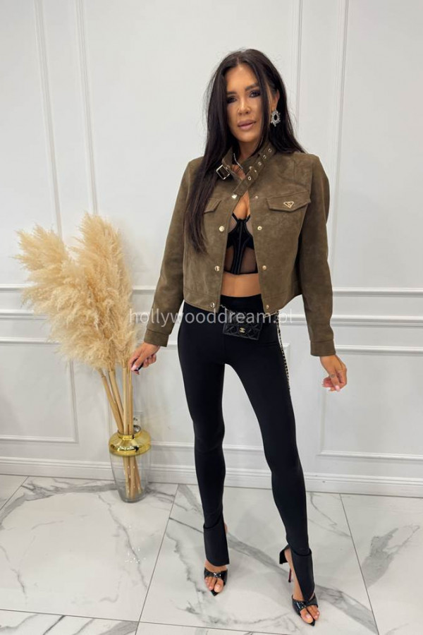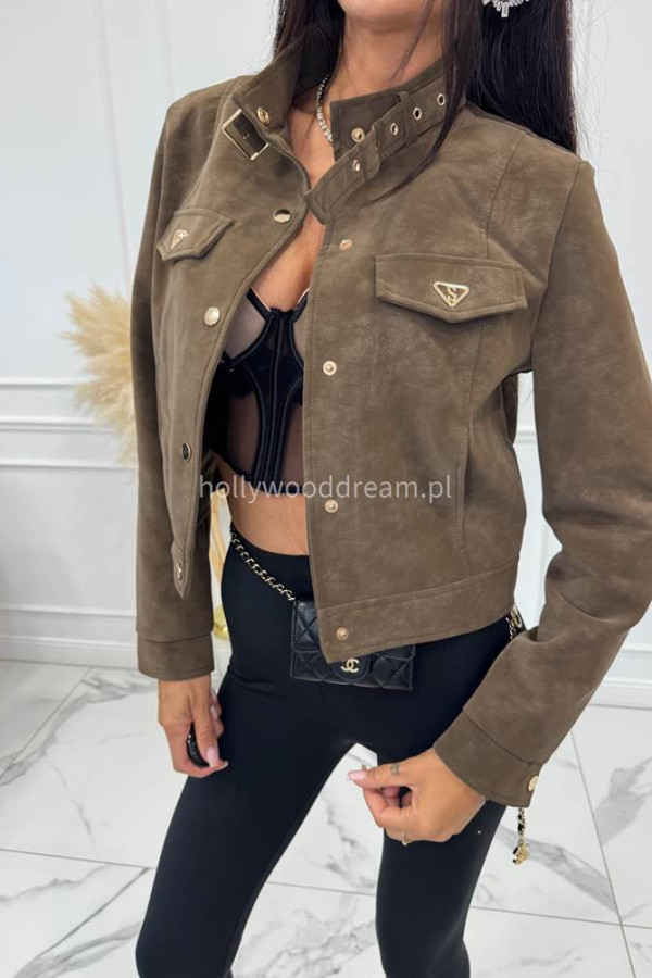 - damska kurtka matowa skórzana ze złotymi guzikami