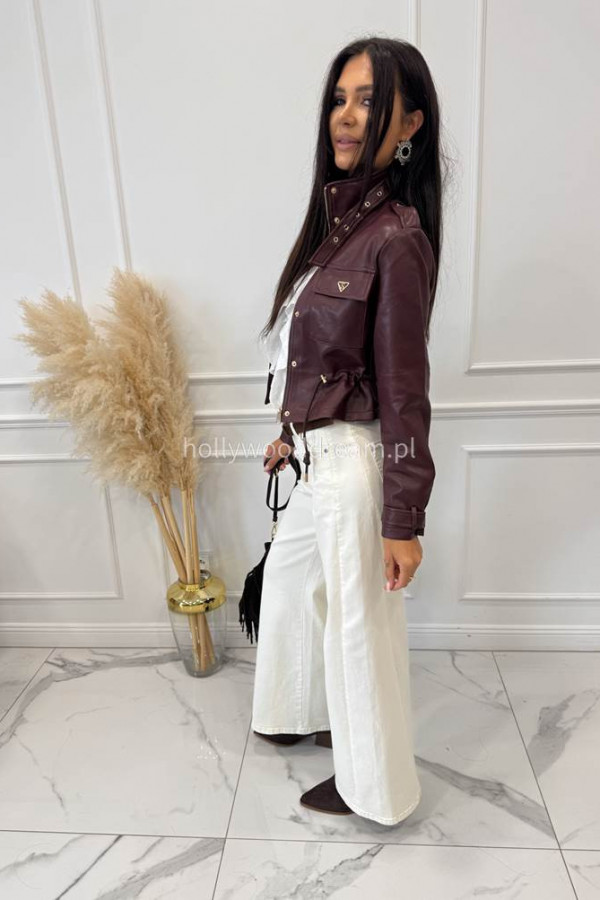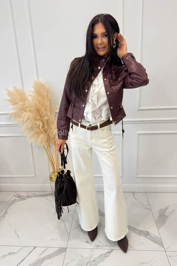 - Kurtka skórzana na złote napy i ściągacz bordowa MANIA