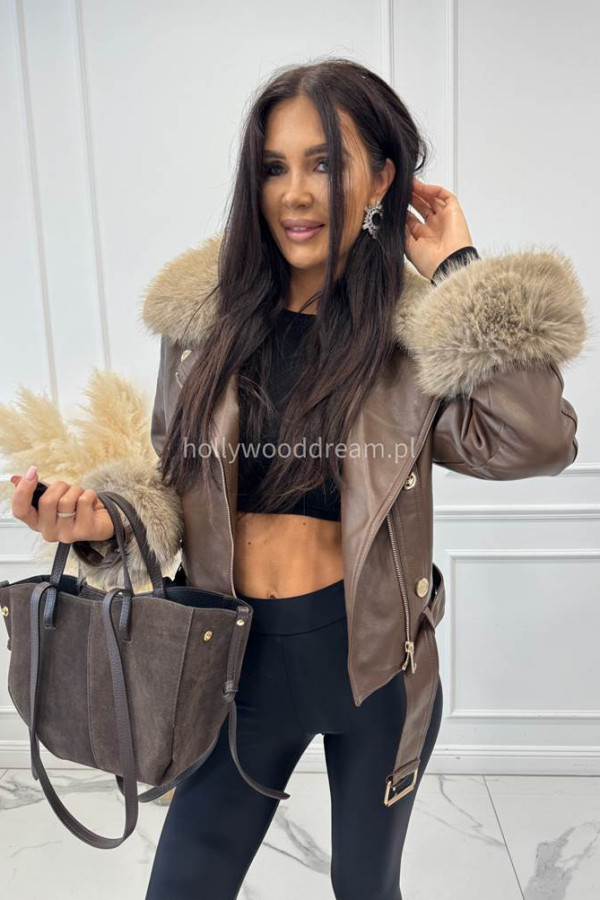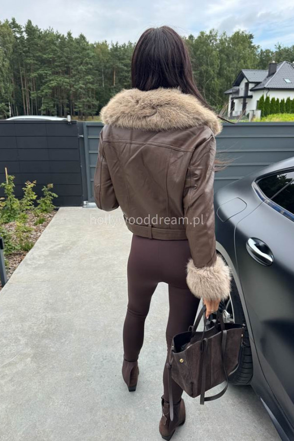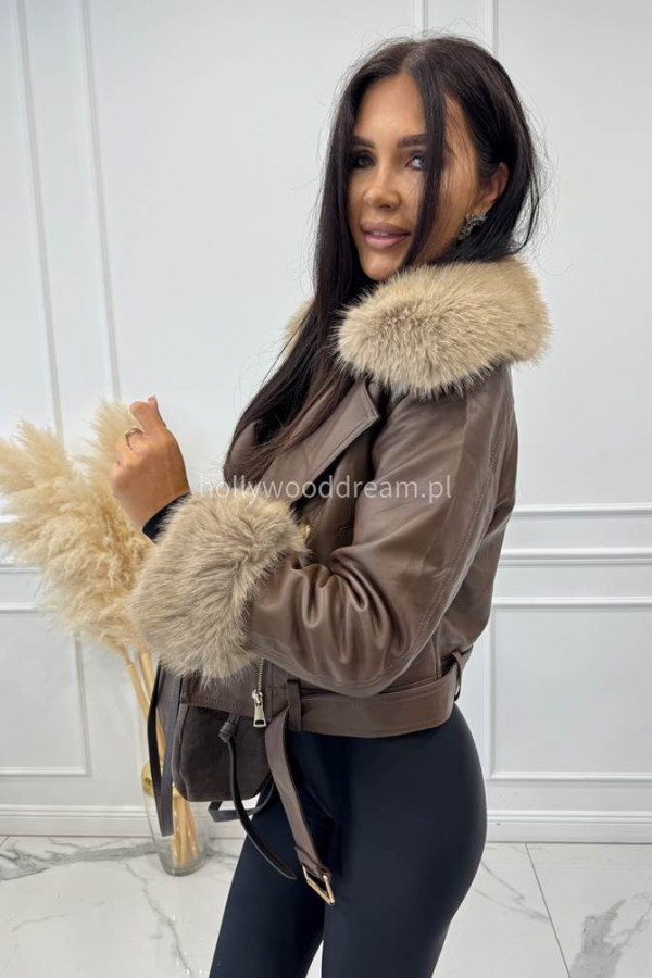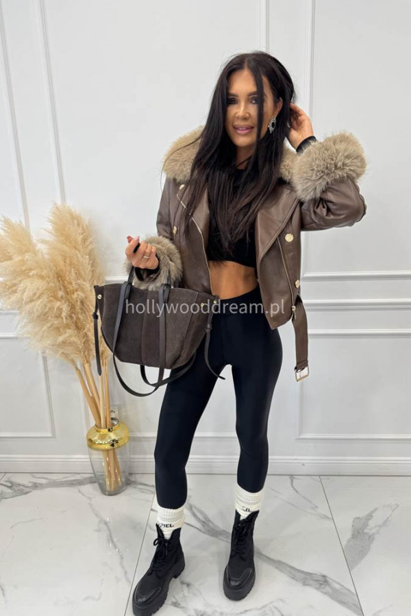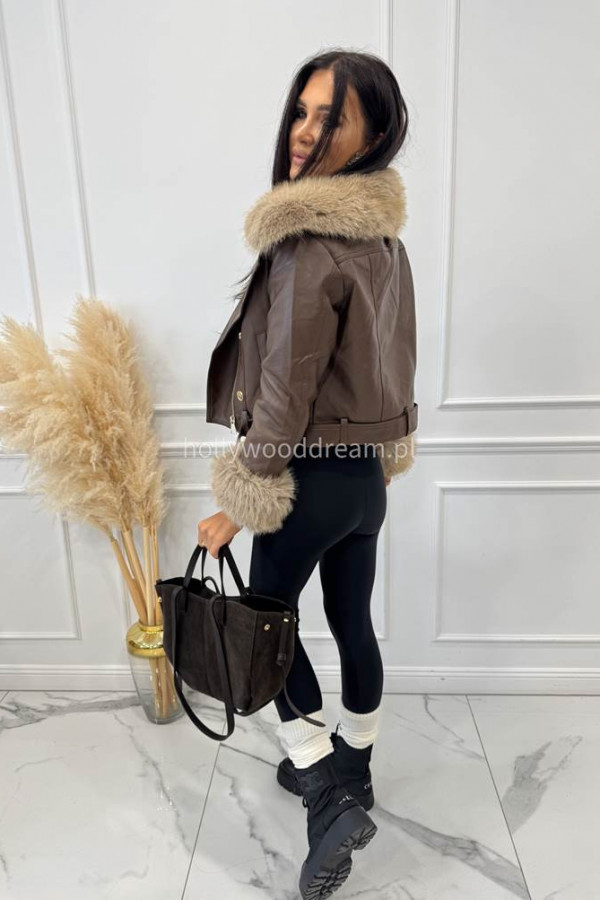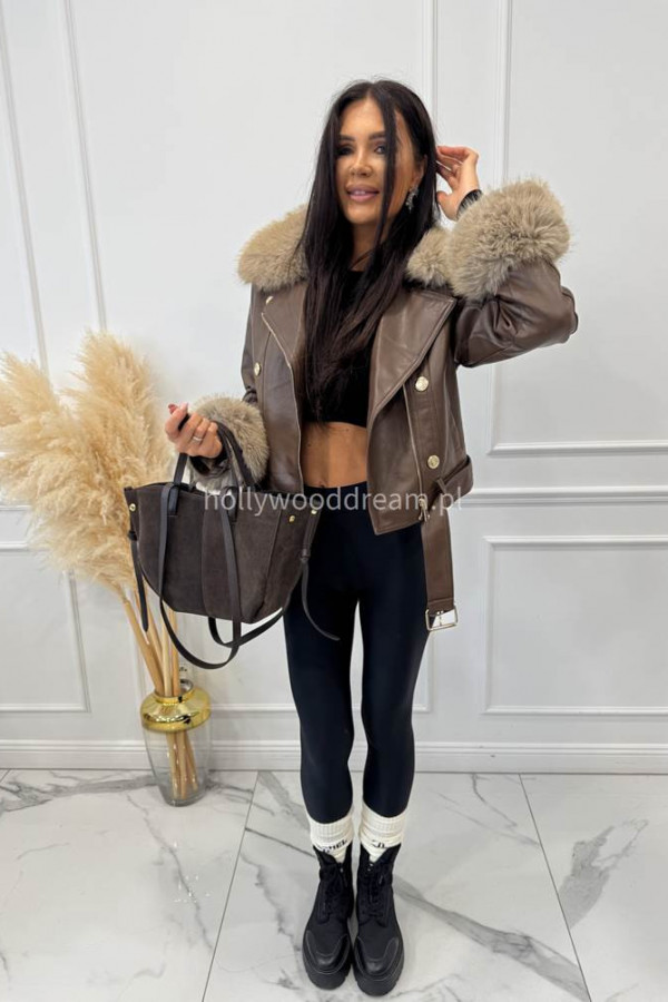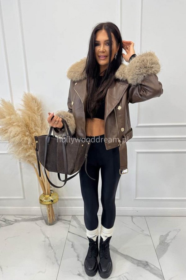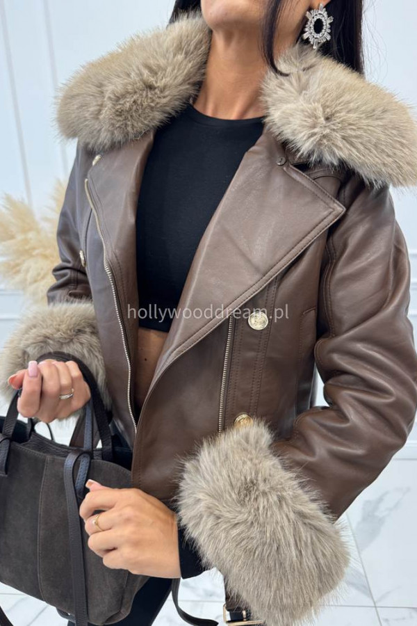 - Kurtka skórzana ocieplana czekoladowa SISI