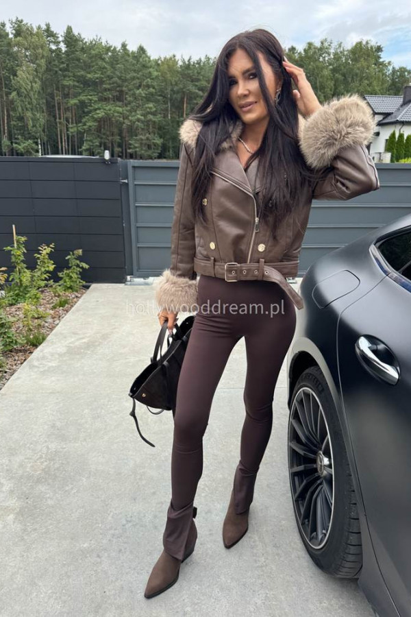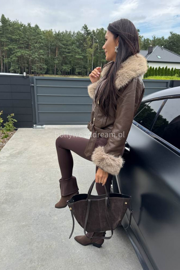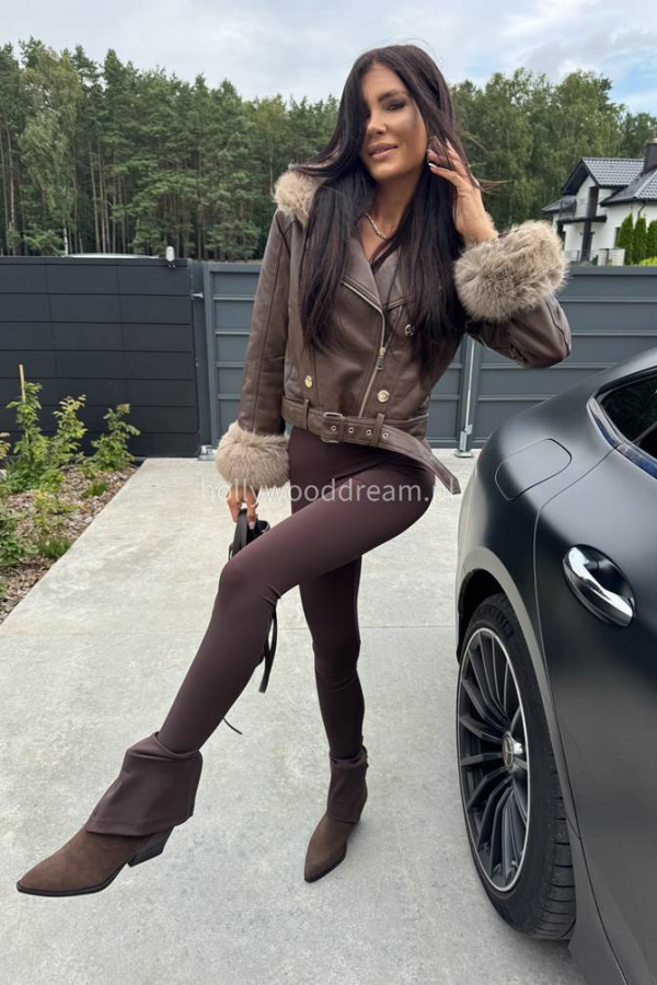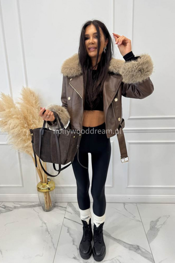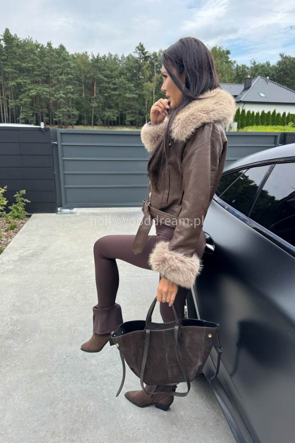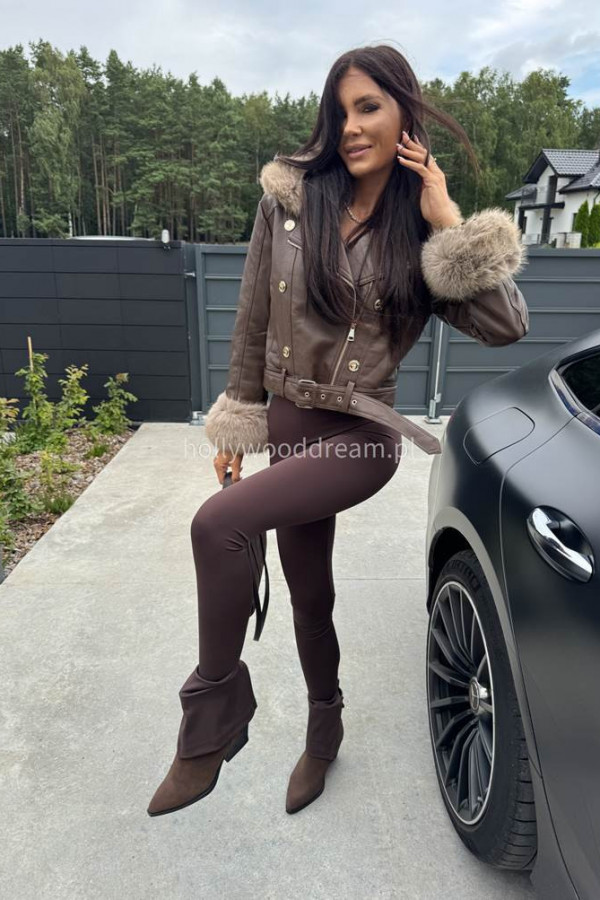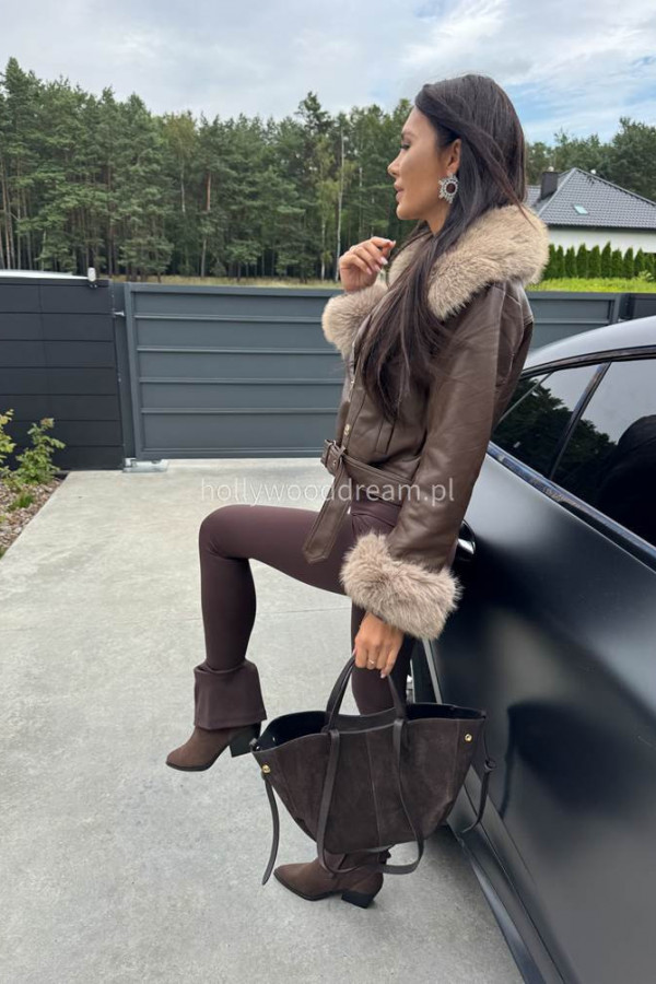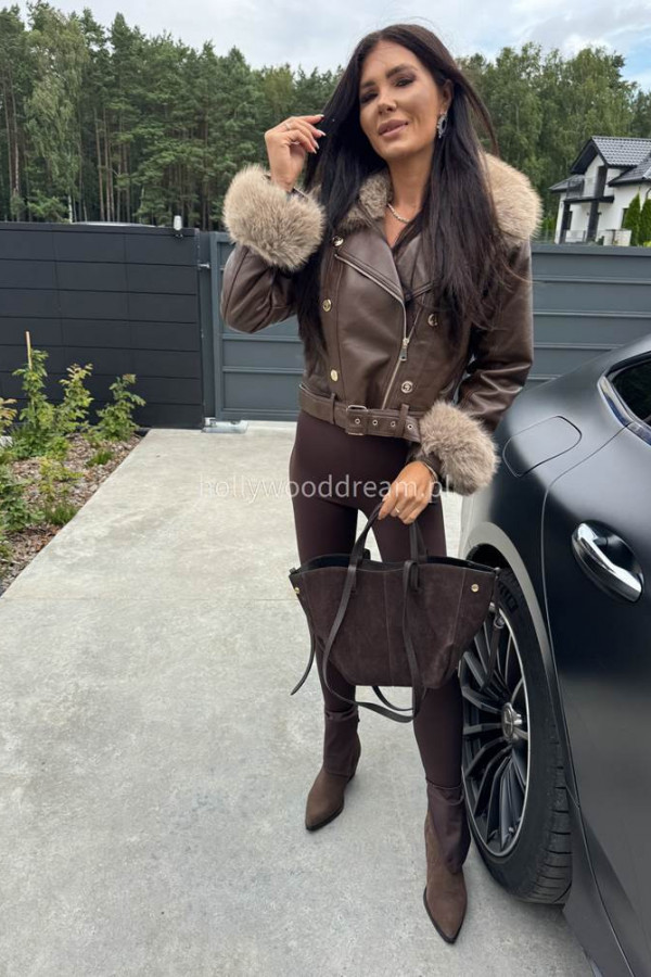 - Kurtka skórzana ocieplana czekoladowa SISI