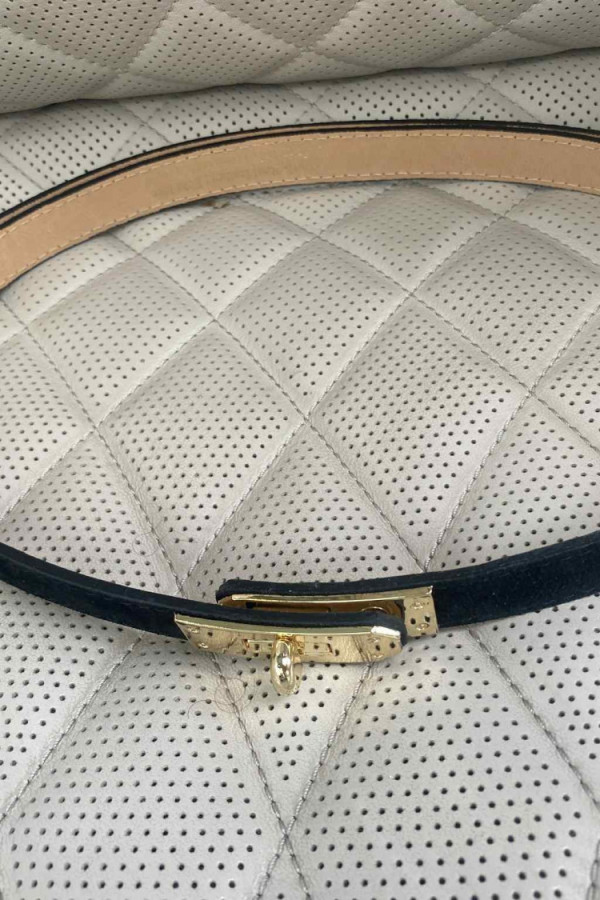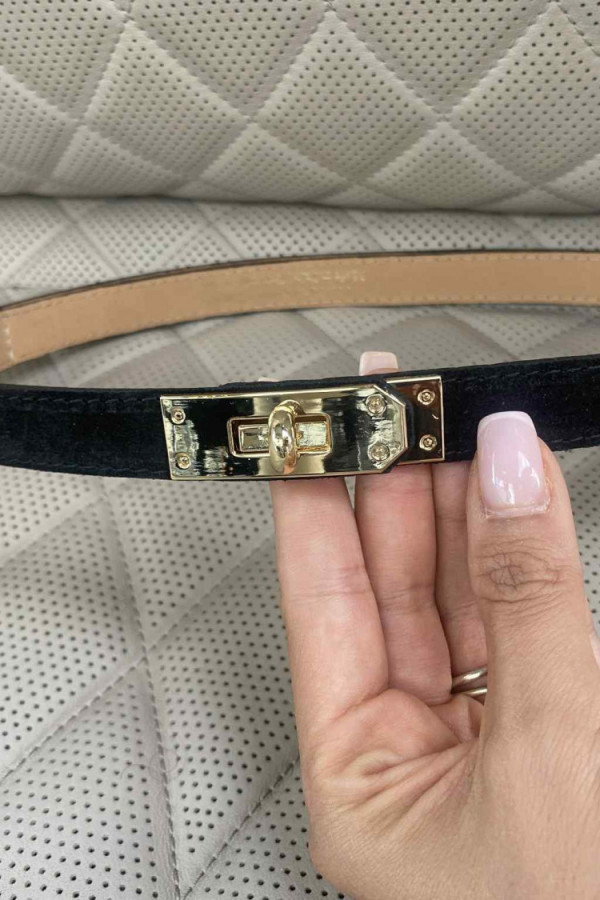Pasek zamszowy wąski z regulowaniem czarny VERA PELLE
