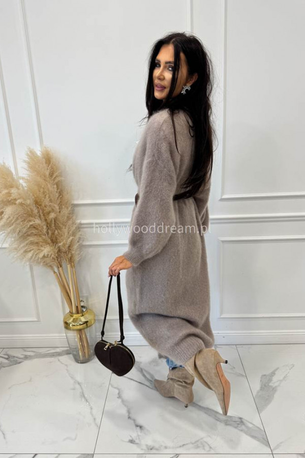 Mokka kardigan ANTONIO z ekskluzywnego kid moheru to propozycja dla kobiet ceniących jakość i ponadczasowy styl. Miękka, puszysta przędza otula ciało niczym chmurka, a długi fason wysmukla sylwetkę i dodaje elegancji każdej stylizacji. To idealny wybór na chłodniejsze dni – świetnie prezentuje się zarówno w wersji casual z jeansami, jak i narzucony na sukienkę. Kardigan ANTONIO to inwestycja w klasykę, która nie wychodzi z mody.