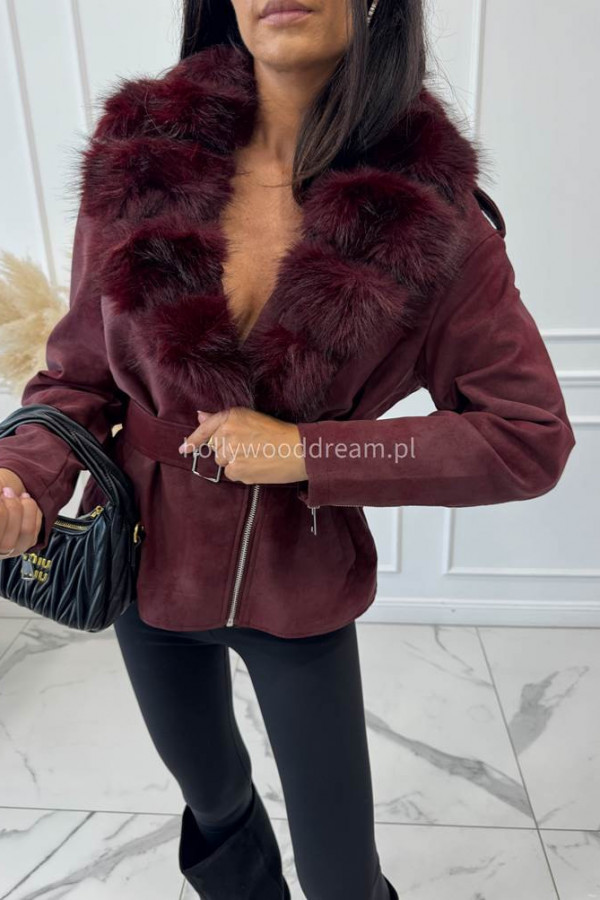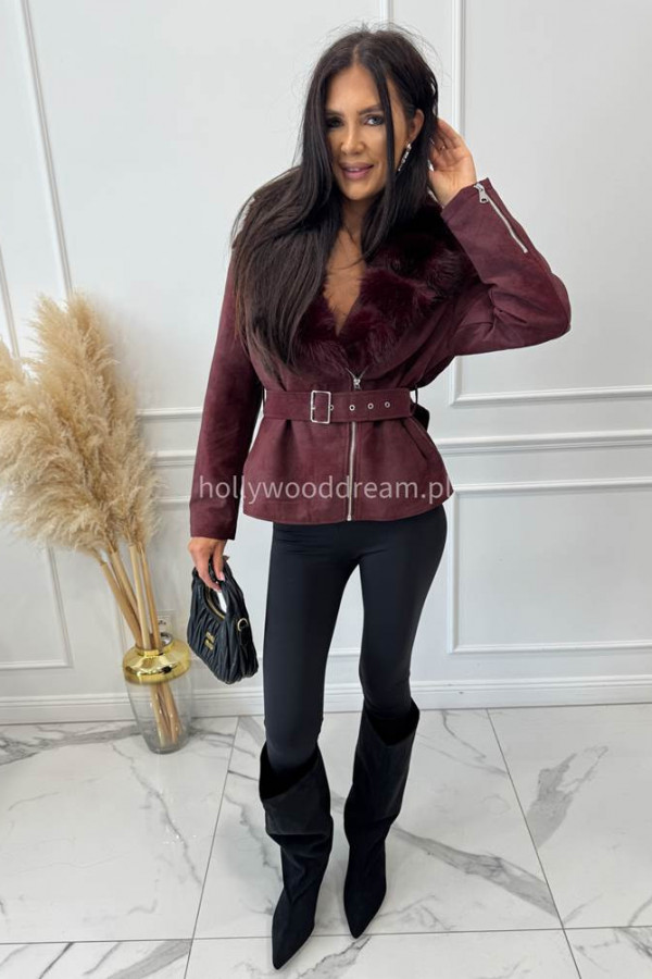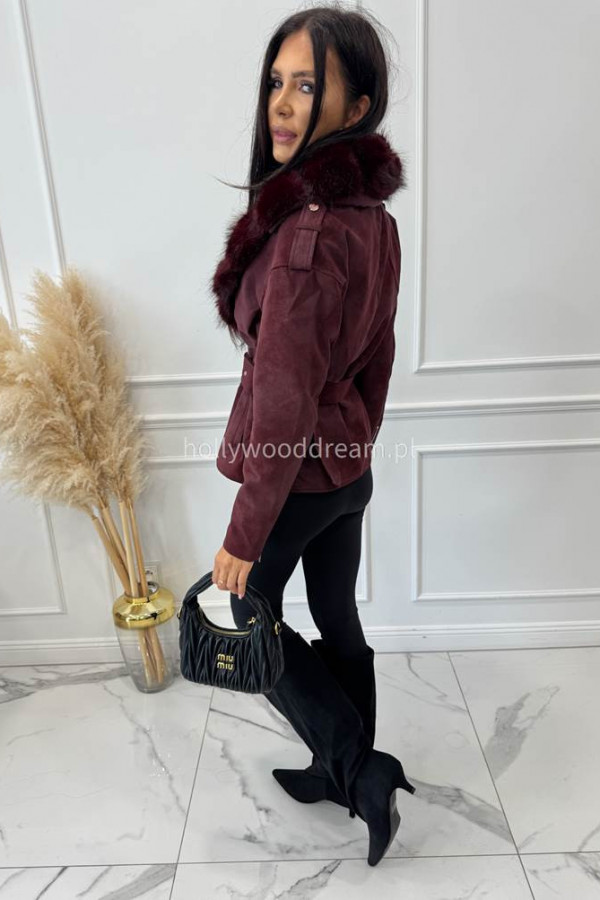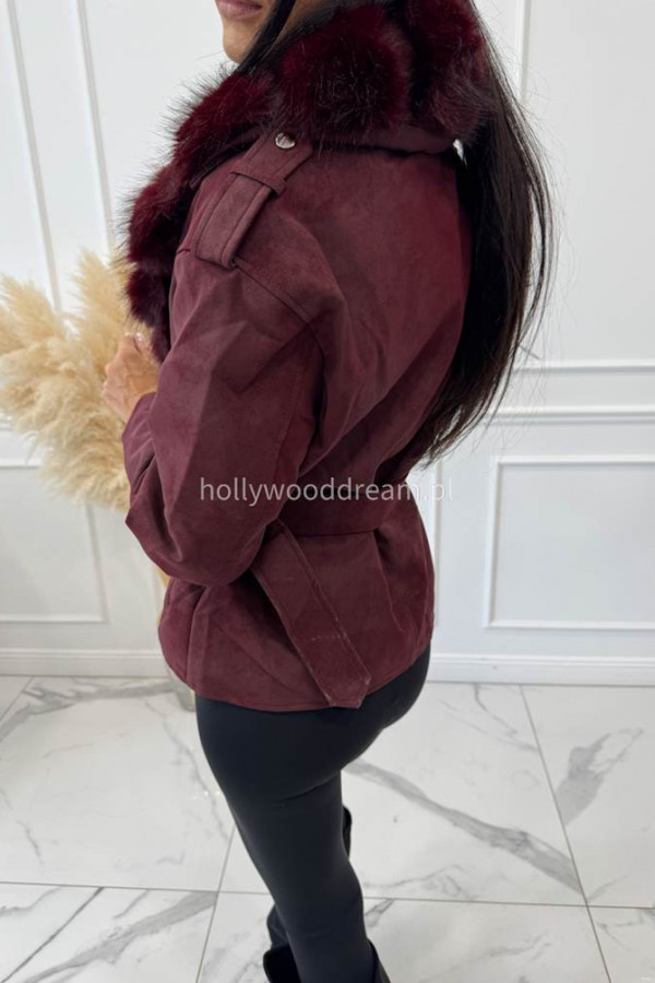 Kurtka a'la zamszowa ocieplana futerkiem bordowa KENDAL