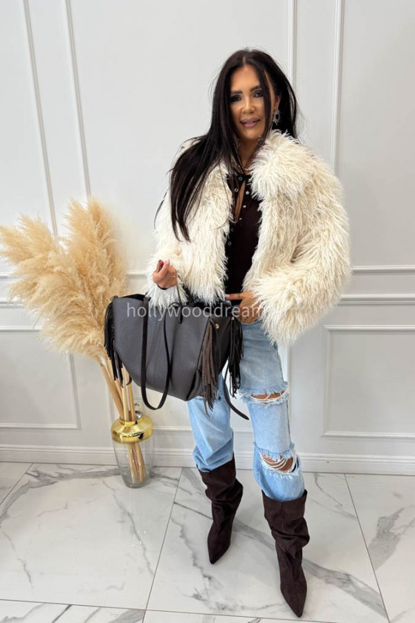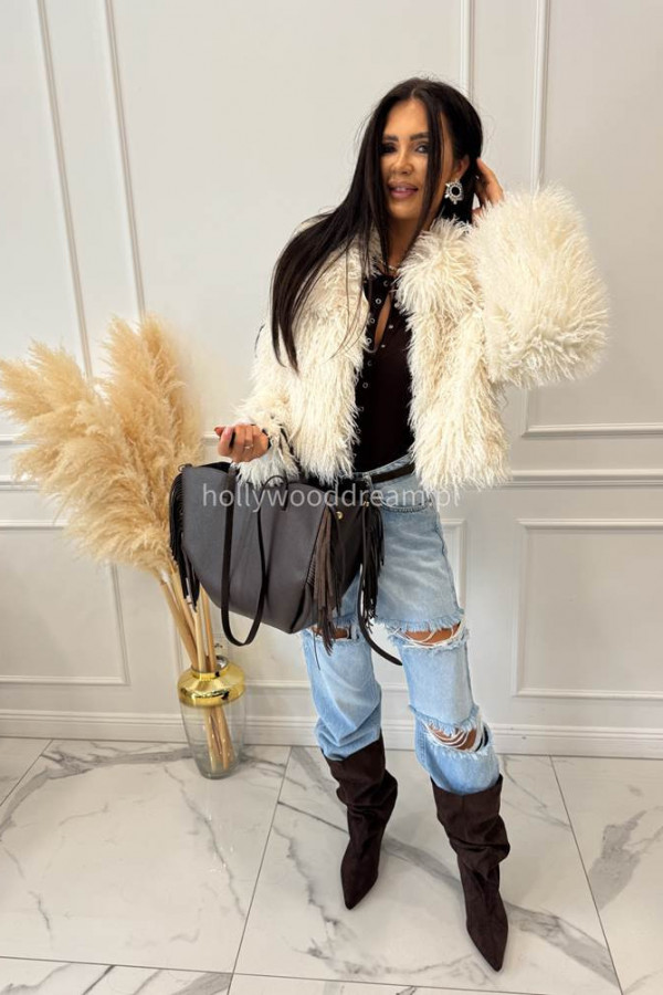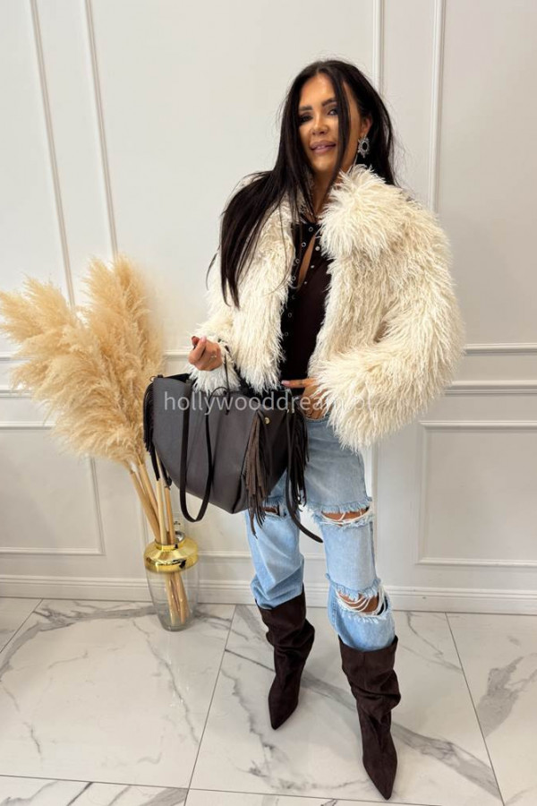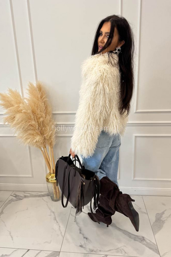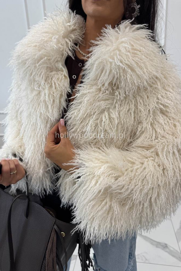 - Futerko krótkie z karbowanym włosem kremowe BIANKA