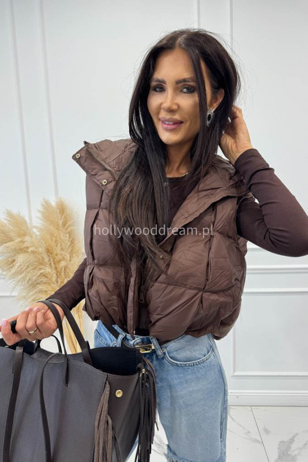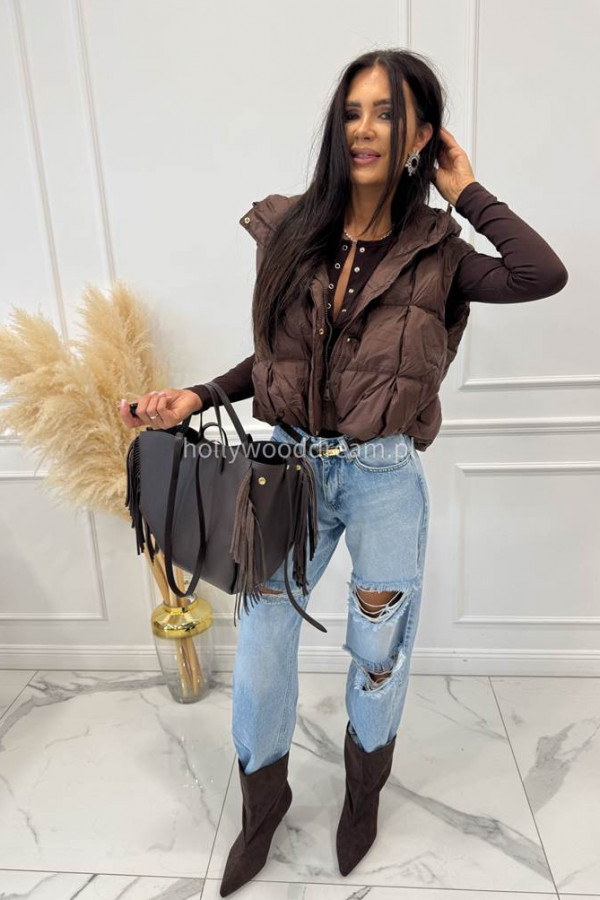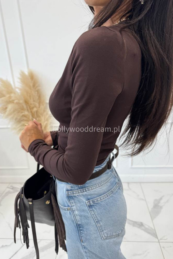 Body bawełniane na długi rękaw zapinane na guziki czekoladowe SARA