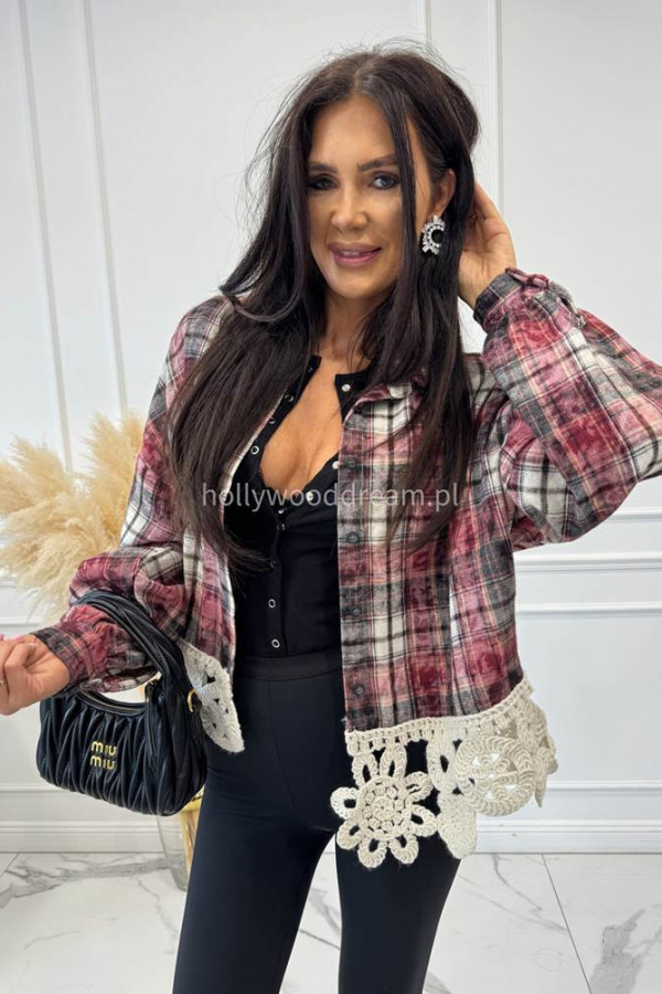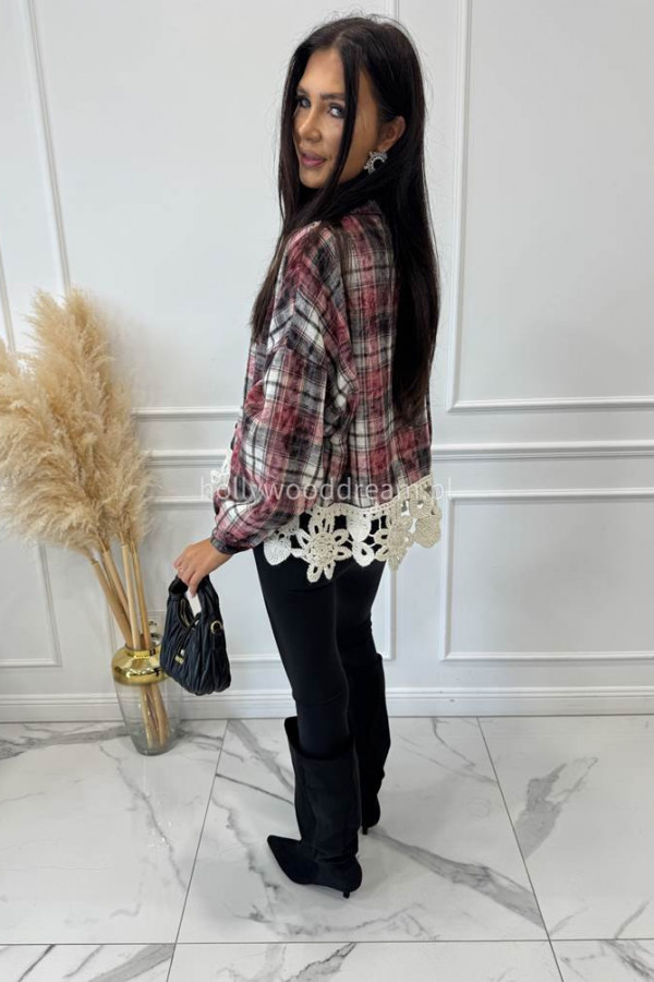Koszula GABRIEL to klasyka w nowoczesnym wydaniu. Bordowo-czarna krata w stylu retro została przełamana oryginalnym haftem u dołu, który dodaje całości kobiecego charakteru. Luźniejszy fason zapewnia wygodę noszenia, a miękki, bawełniany materiał sprawia, że to świetny wybór na co dzień. Noś ją z jeansami, legginsami lub jako narzutkę – koszula GABRIEL to baza do wielu modnych stylizacji z nutą romantycznego luzu.