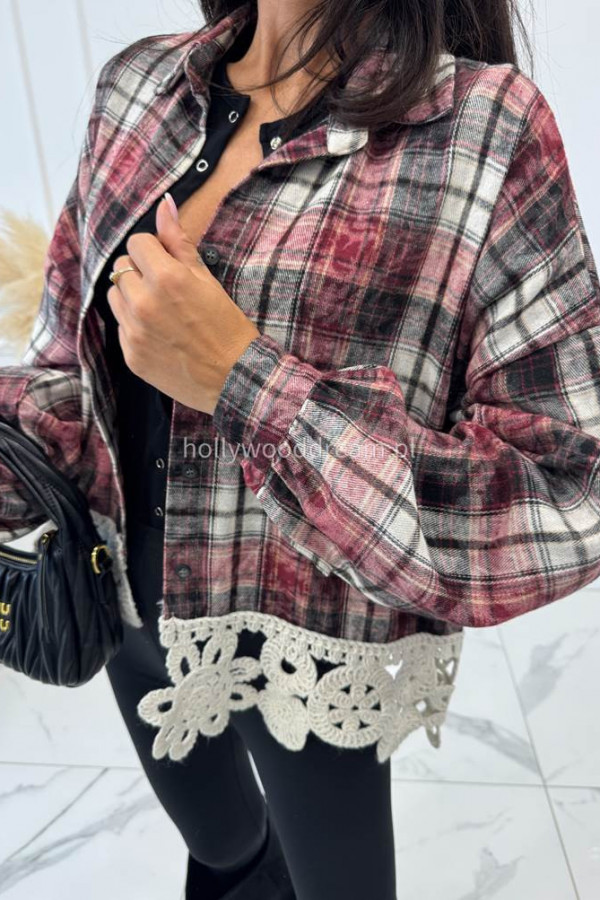 - Koszula w krate wykończona haftem na dole bordowo-czarna GABRIEL