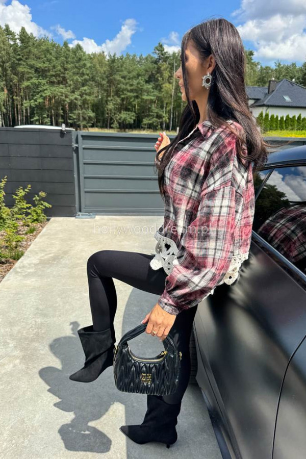 - luźna koszula w kratę z ozdobnym dołem