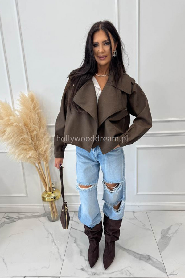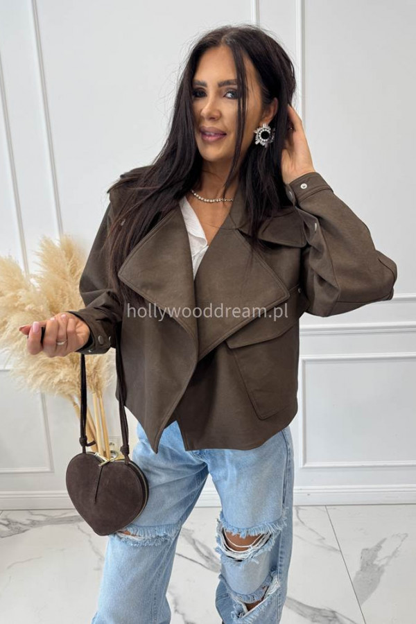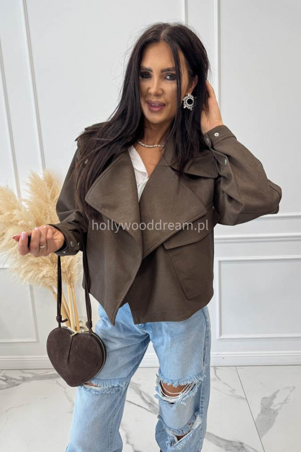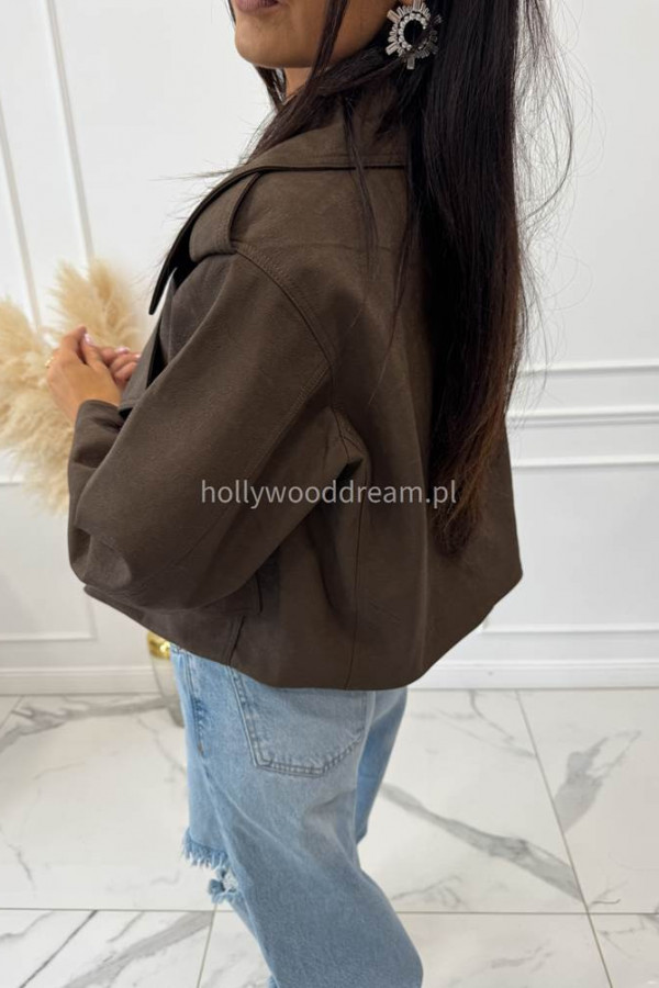 - Kurtka oversize skórzana matowa czekoladowa SELLA