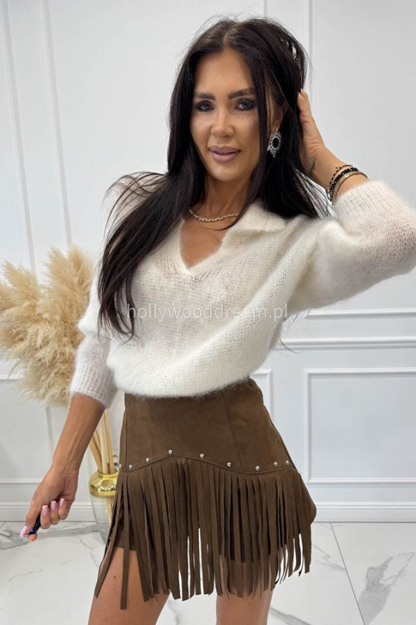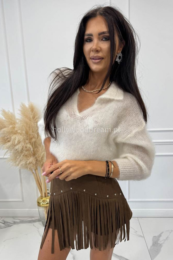 - Sweter moher z kołnierzykiem biały NINA