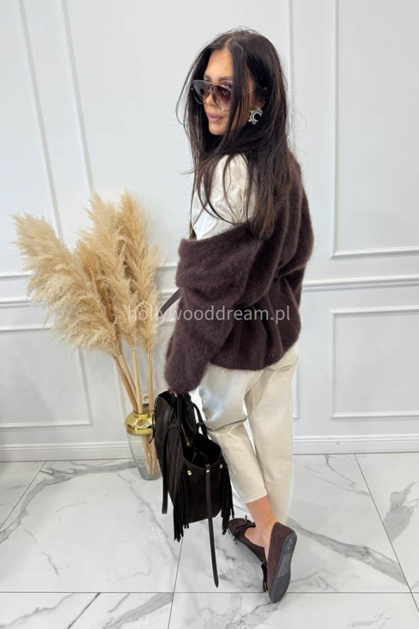 - czekoladowy kardigan damski
