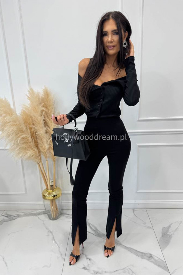 - Legginsy dzwony z rozcięciem czarne DANTE